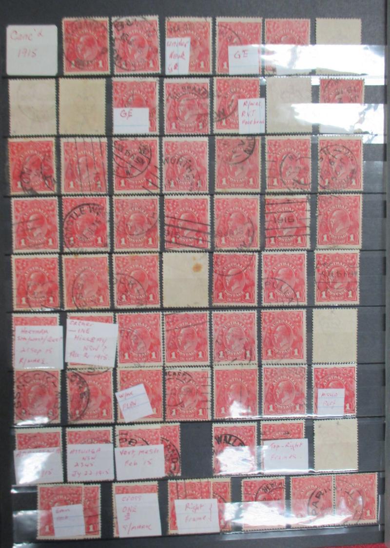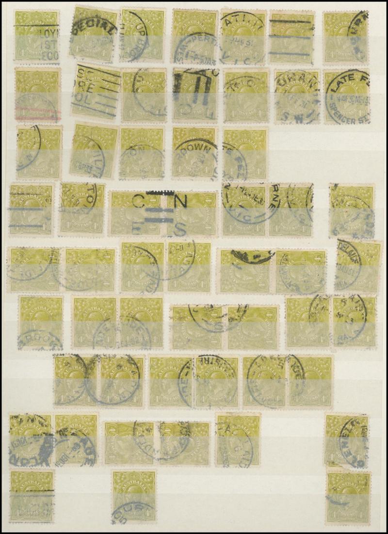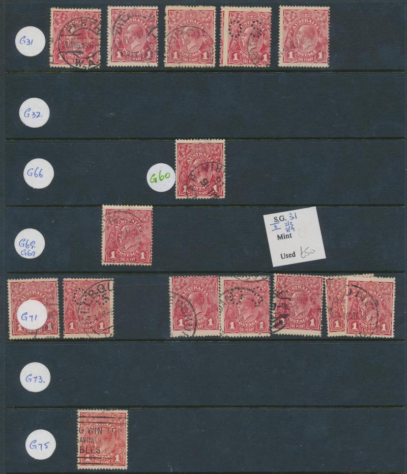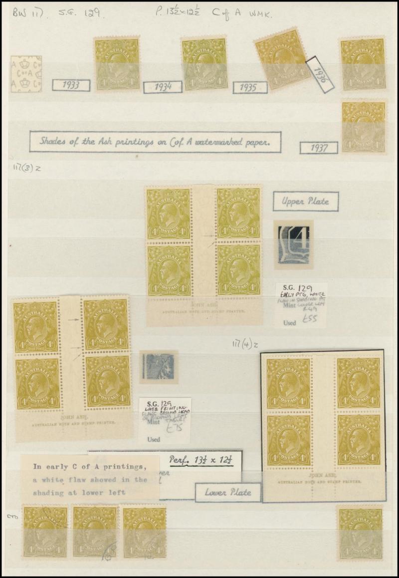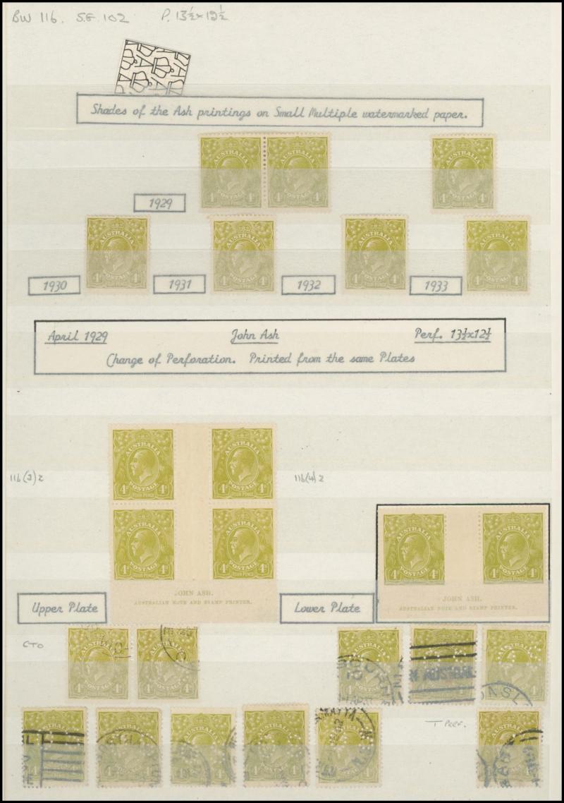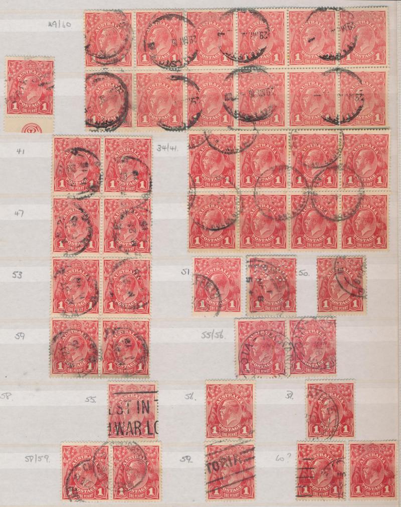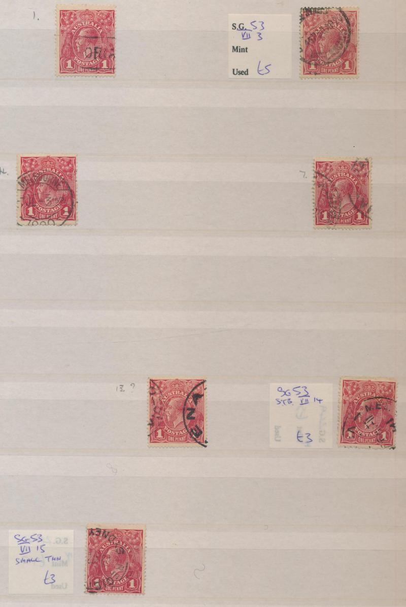 replaced it, No Wmk Obliterated 'AL' of 'HALFPENNY', etc, also a detailed study of Electro 13 & 14 Worn Upper Frames, also lots of other multiples, Federal & State Government punctures, and unplated examples many with dated cancels & potential