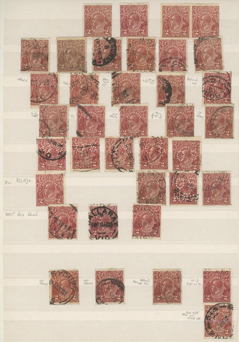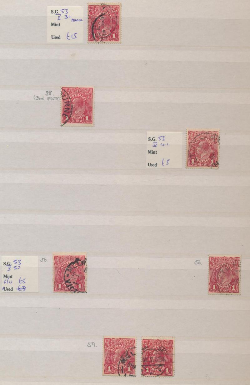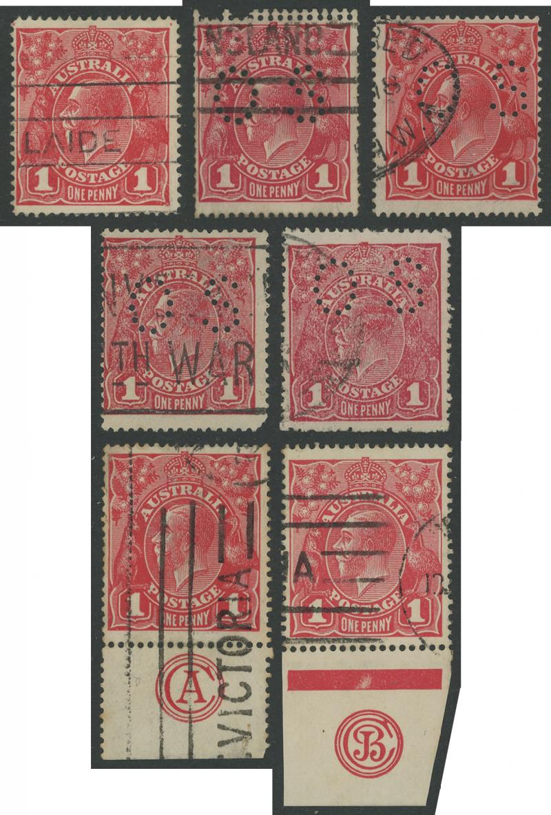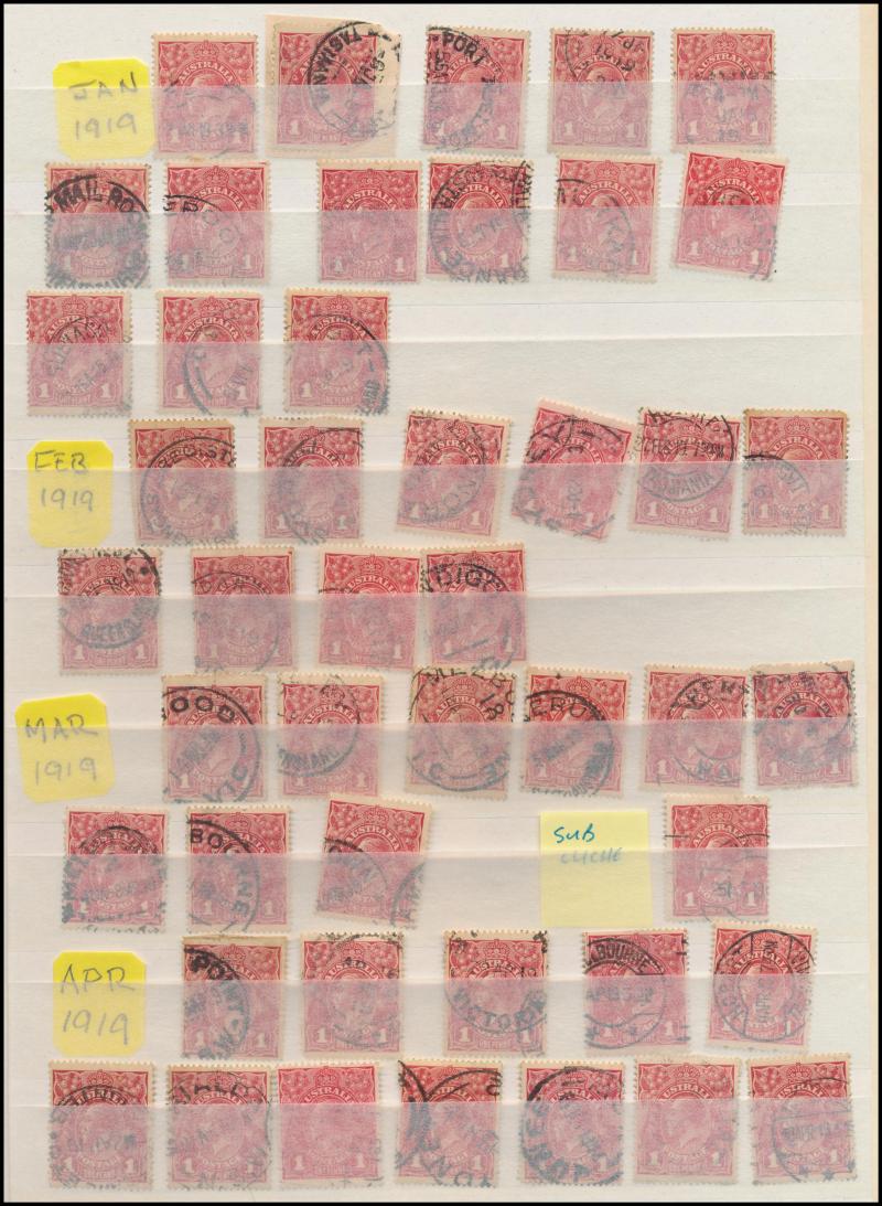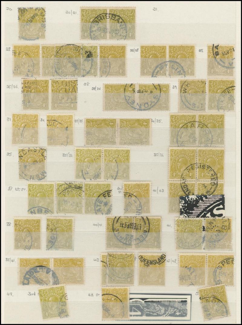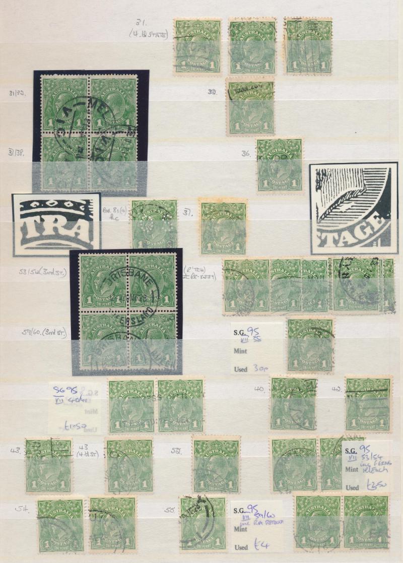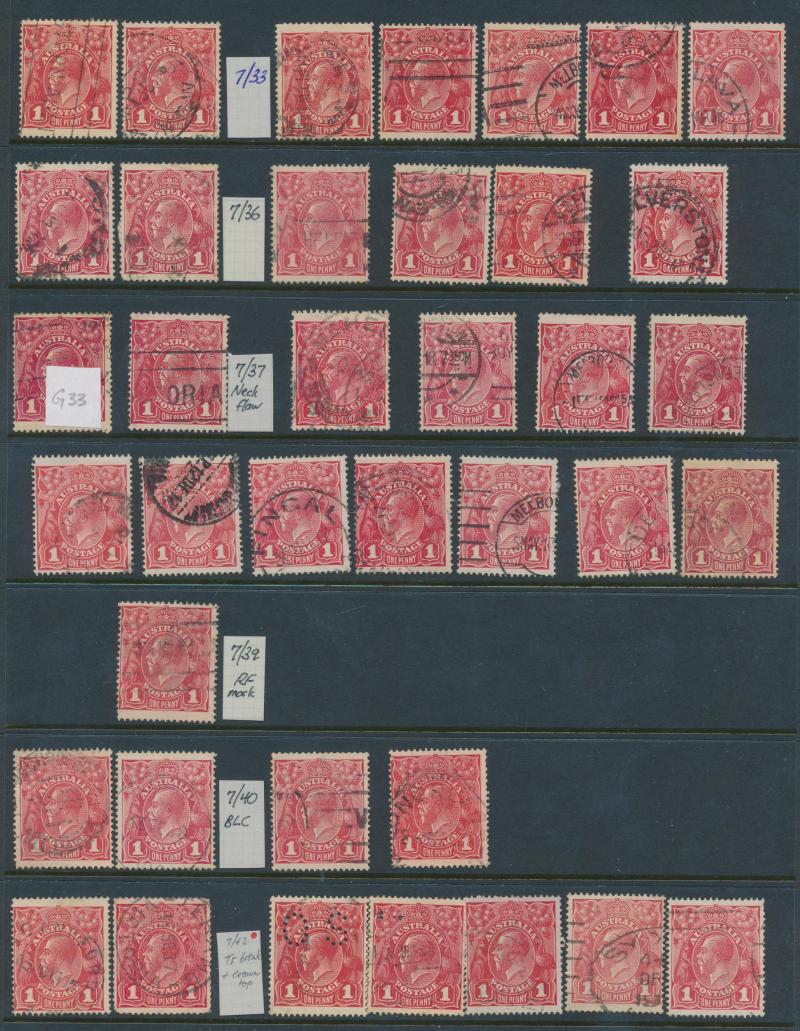 replaced it, No Wmk Obliterated 'AL' of 'HALFPENNY', etc, also a detailed study of Electro 13 & 14 Worn Upper Frames, also lots of other multiples, Federal & State Government punctures, and unplated examples many with dated cancels & potential