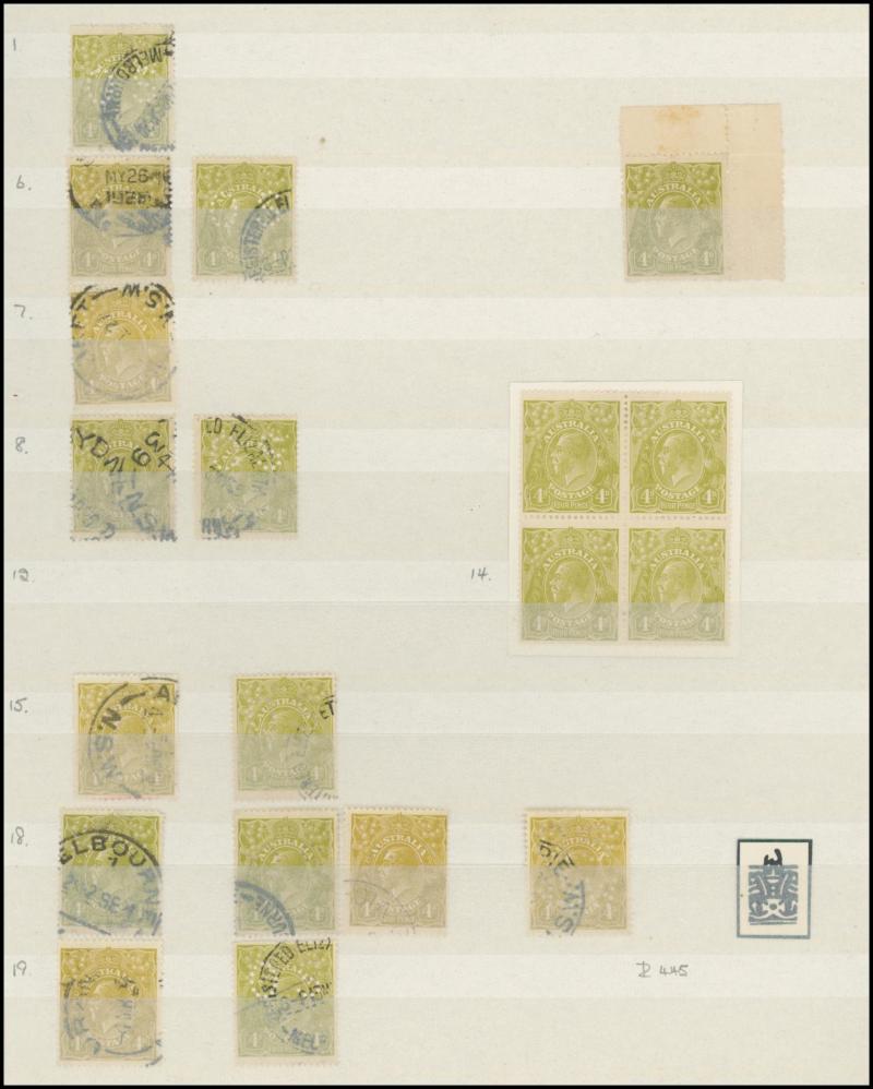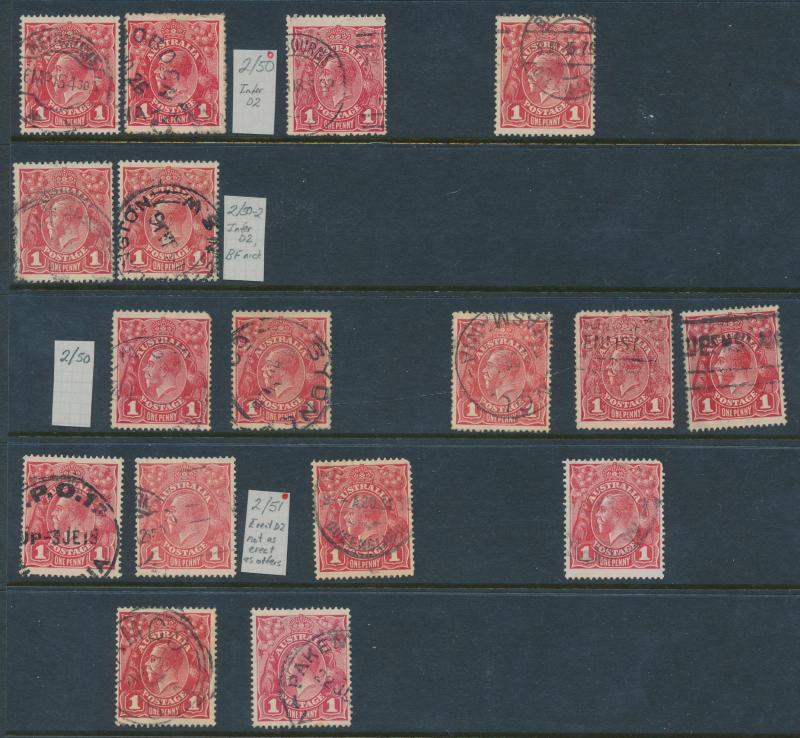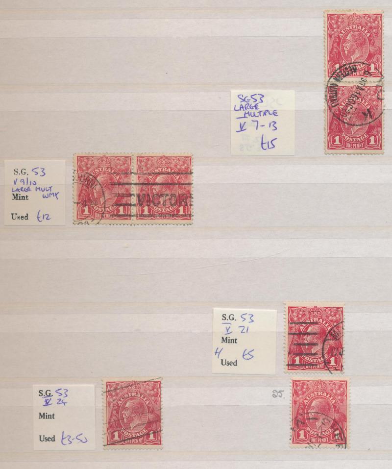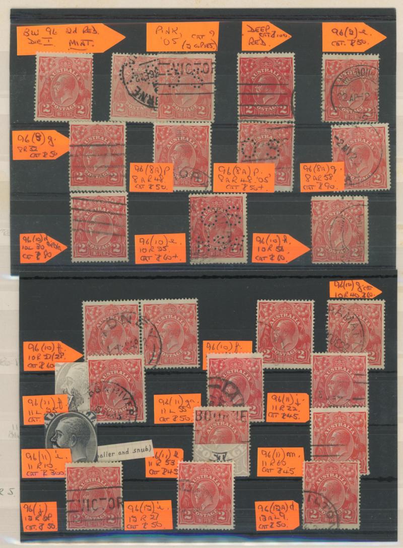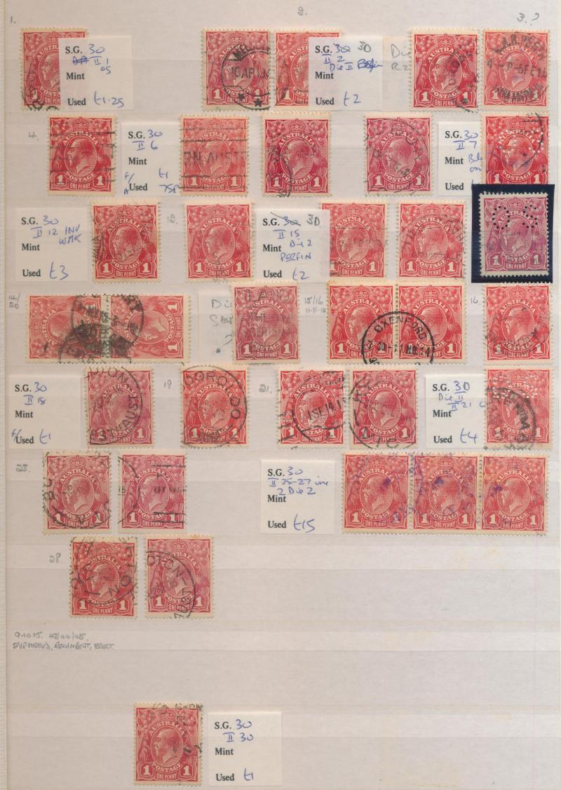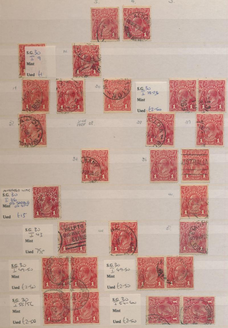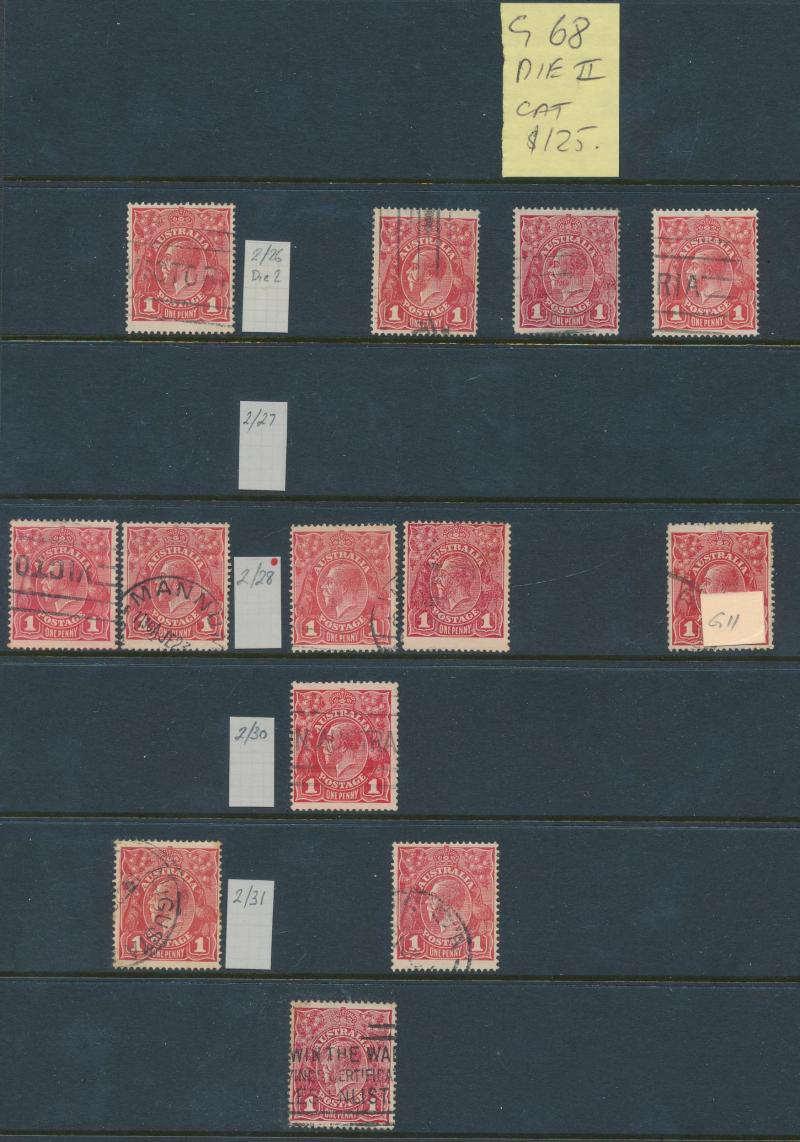replaced it, No Wmk Obliterated 'AL' of 'HALFPENNY', etc, also a detailed study of Electro 13 & 14 Worn Upper Frames, also lots of other multiples, Federal & State Government punctures, and unplated examples many with dated cancels & potential
