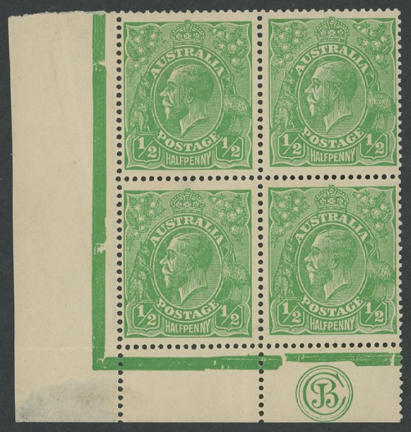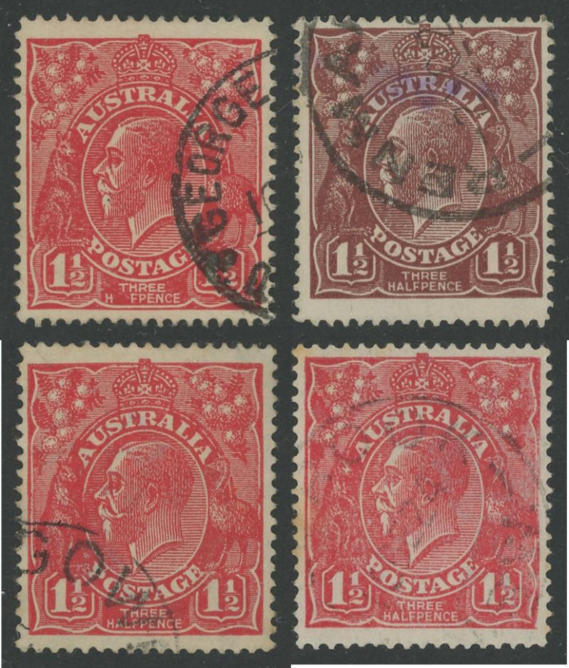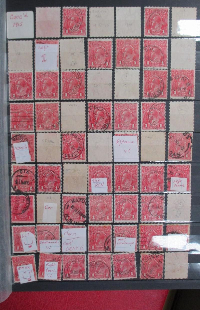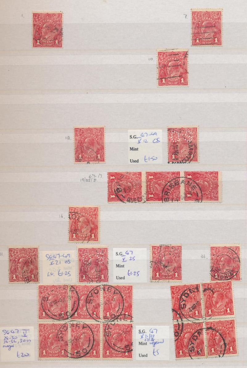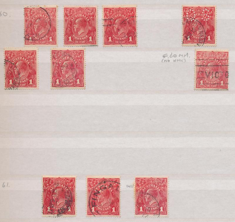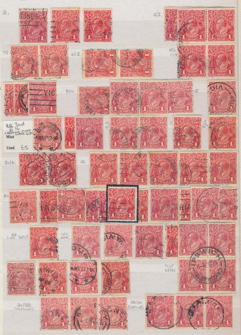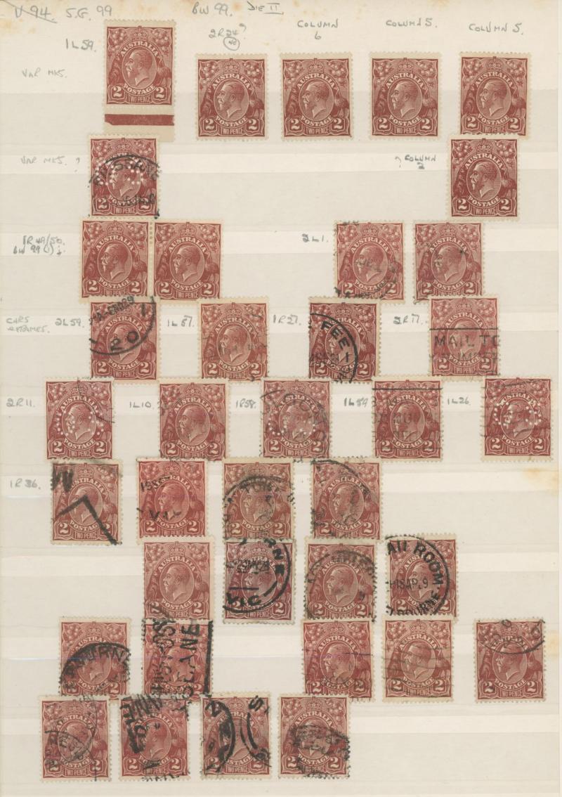 replaced it, No Wmk Obliterated 'AL' of 'HALFPENNY', etc, also a detailed study of Electro 13 & 14 Worn Upper Frames, also lots of other multiples, Federal & State Government punctures, and unplated examples many with dated cancels & potential