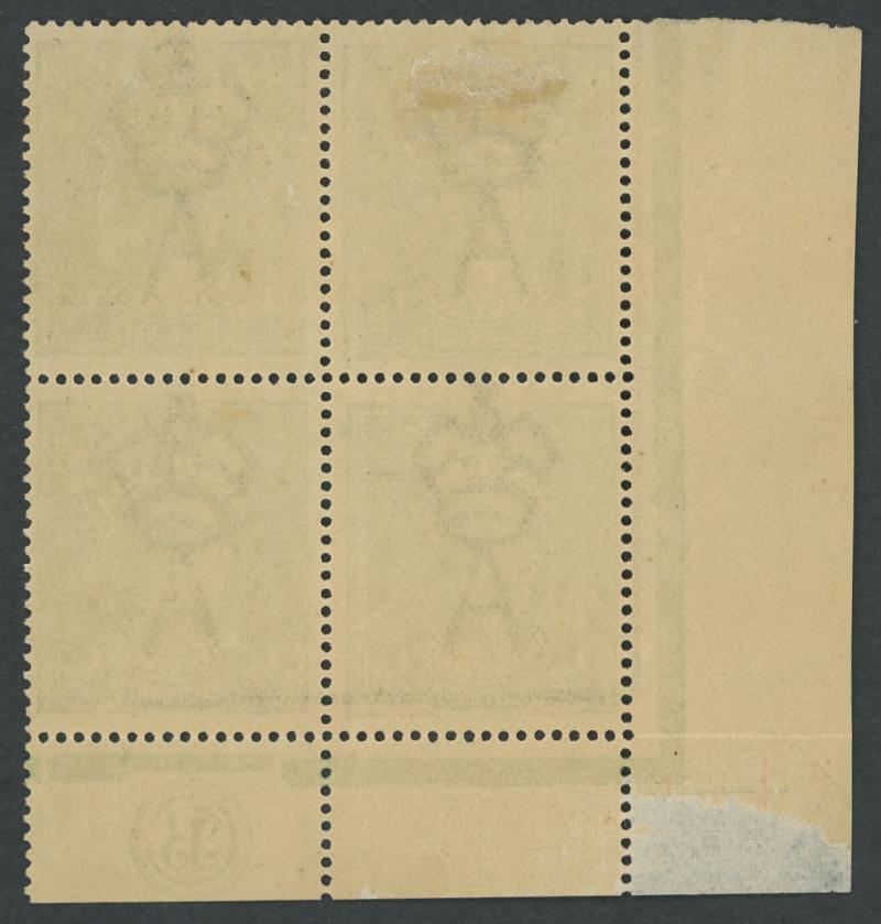 ½d green SG 20 Electro 1 'JBC' Monogram left corner pair ACSC 63(1)z in a block of 4, the monogram unit with Vertical White Flaw in