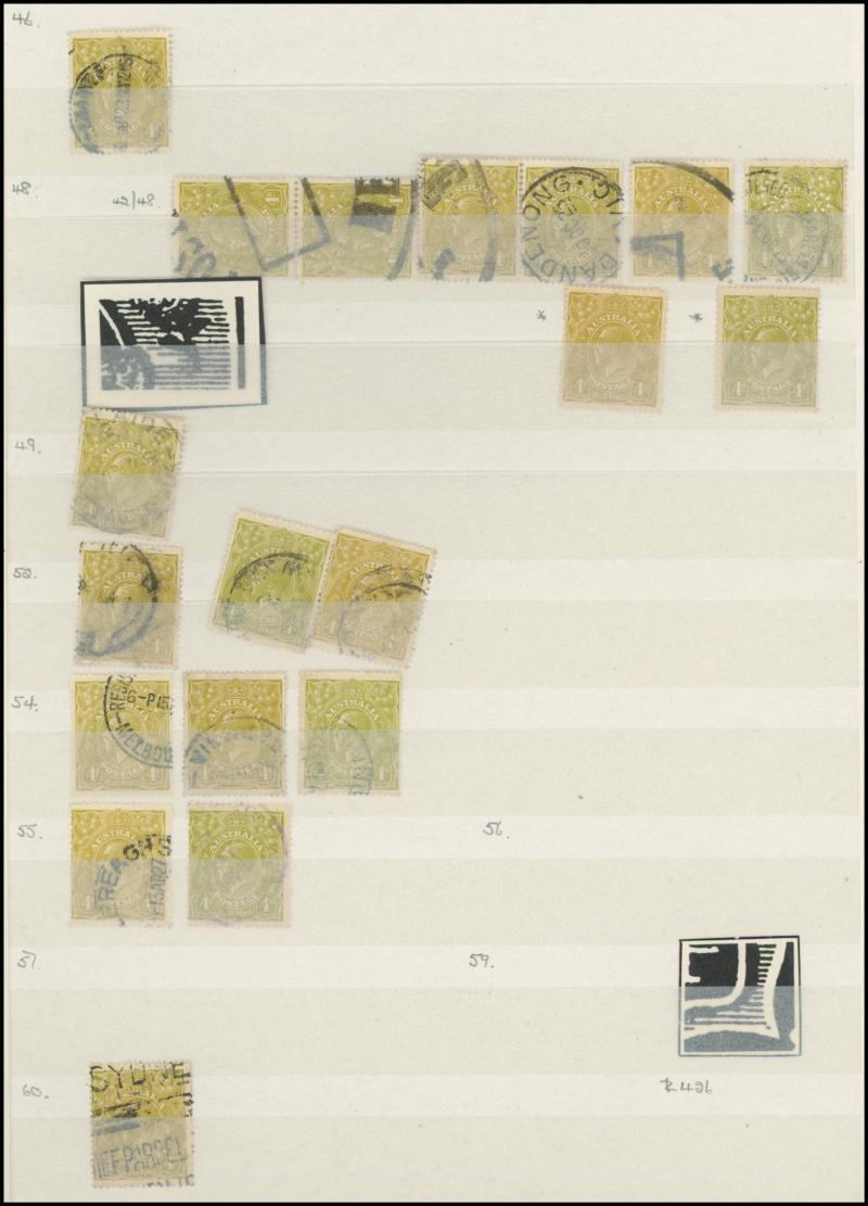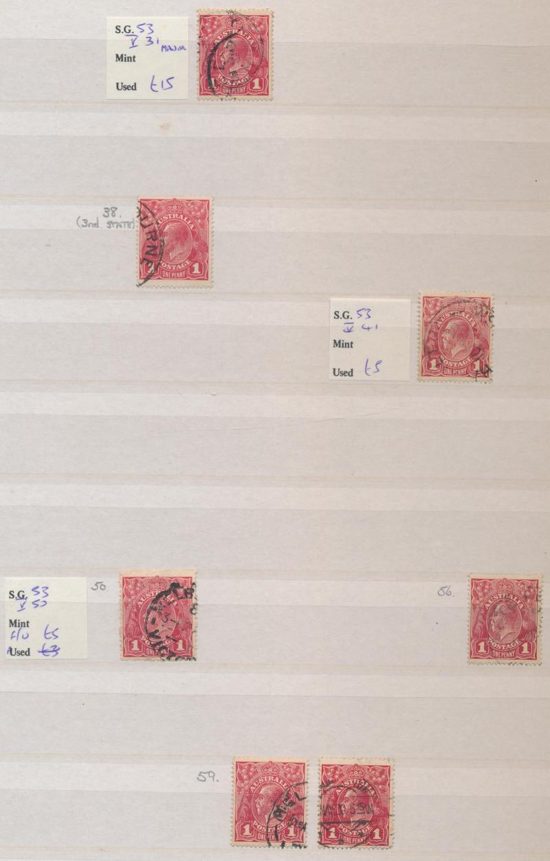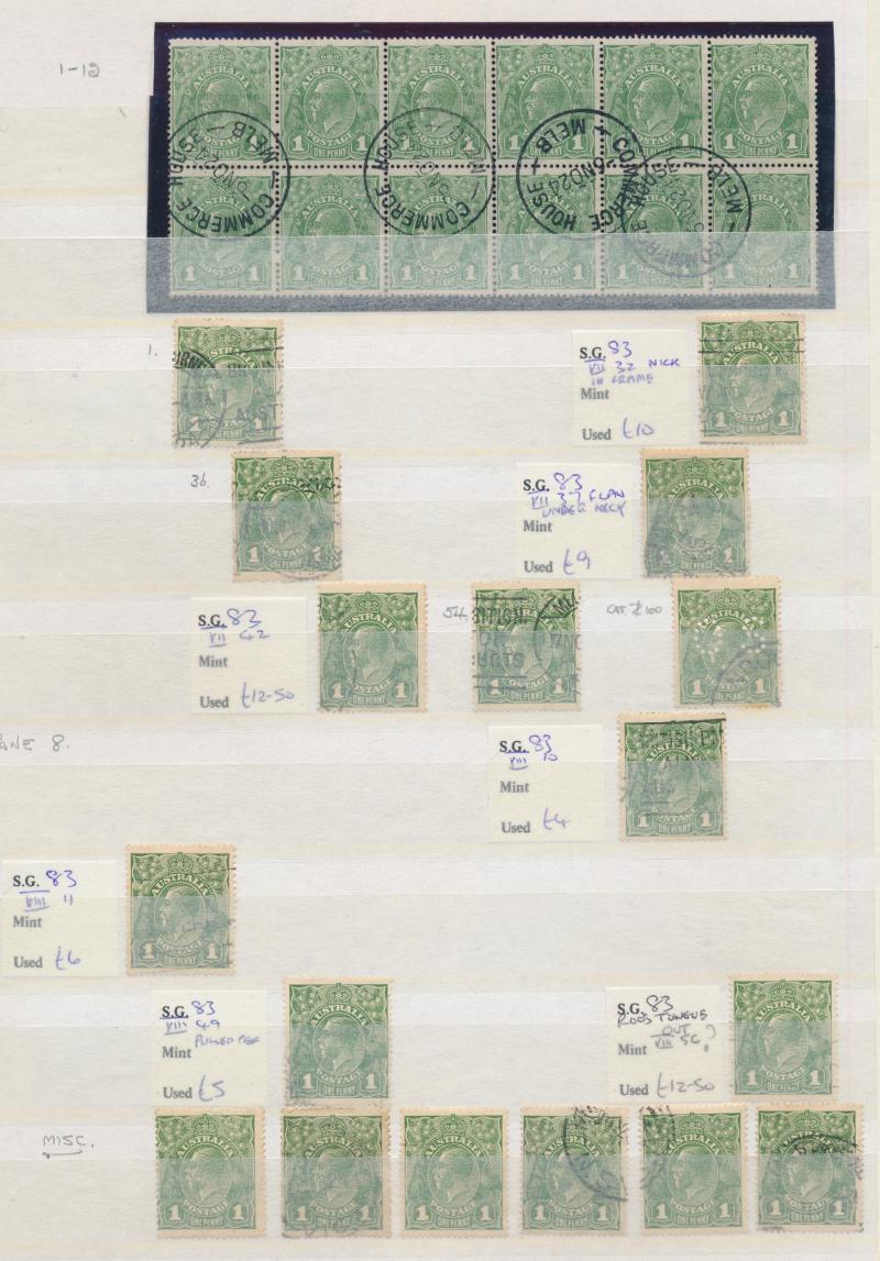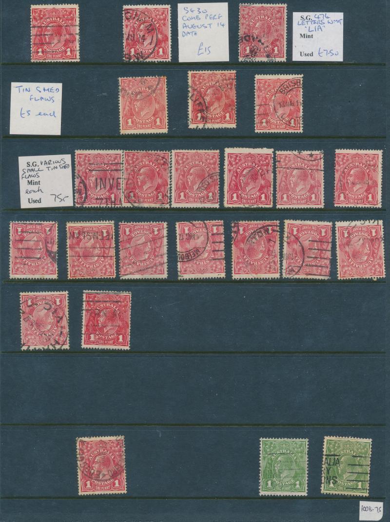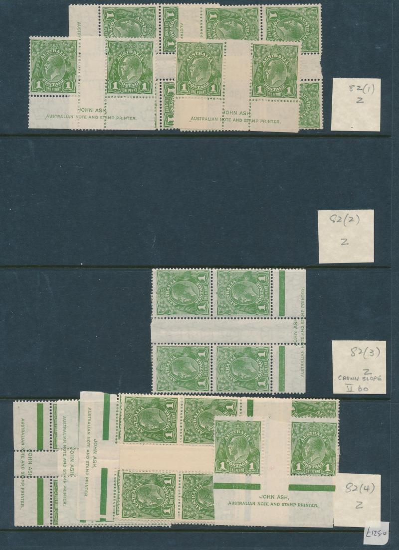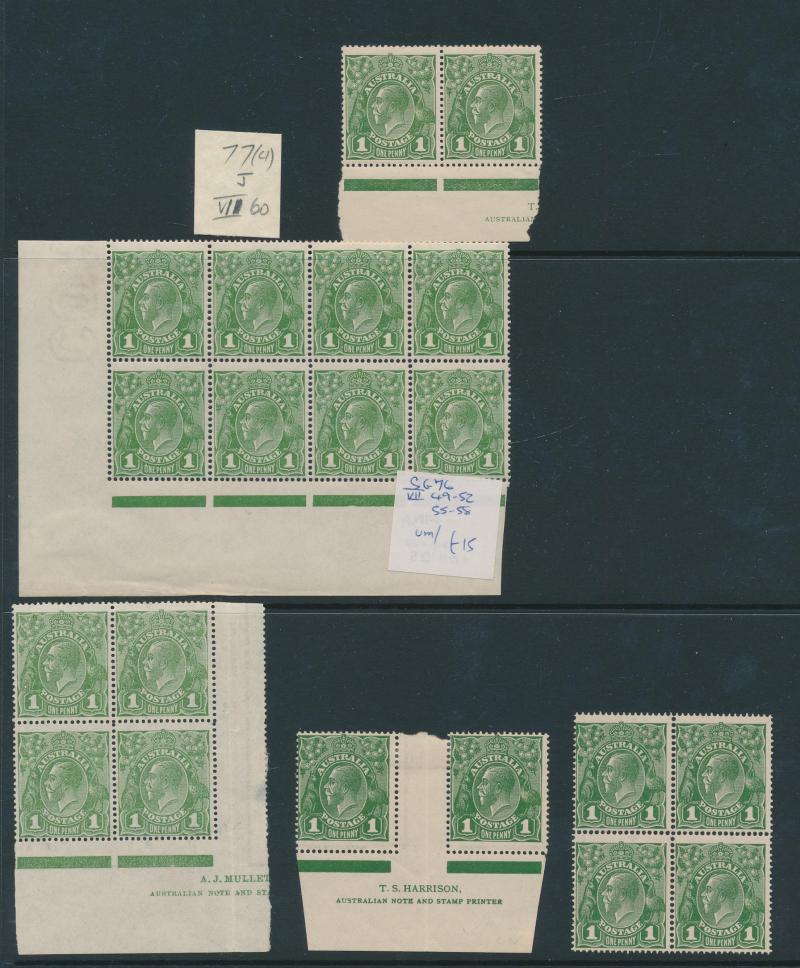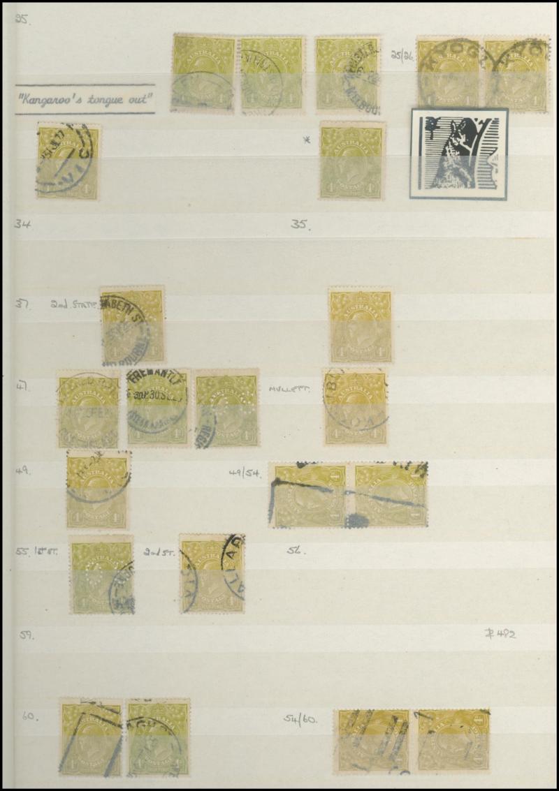 and Pregnant 'Y' x8, Dot before '1' & Thinned Left Frame pair, 'NY' Joined x3 plus examples of the position before the flaw developed, Scratch behind Kangaroo x25, Run 'N' Second & Third States x17, and many, many more, potential postmark interest