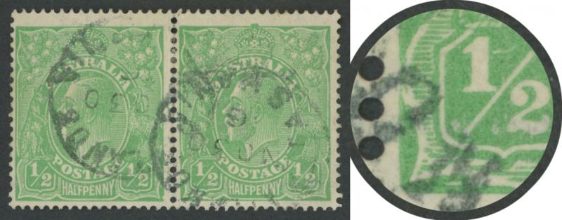 ½d emerald Comb Perf Electro 2 with Cracked Electro from 'A' of 'AUSTRALIA' through Oval in front of King's Face to '2' in Left