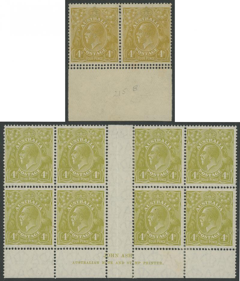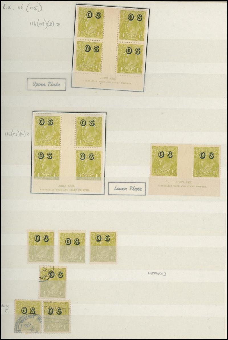 'OS' x4 (Cat $5500+), Perf 13½x12½ John Ash Imprint Plate 3 block of 4 */** & Plate 4 pair in a horizontal strip of 12 */** with listed varieties x3 plus 'OS' Overprint John Ash Imprint Plate 3 & Plate 4 blocks of 4 */** plus varieties, CofA Wmk John