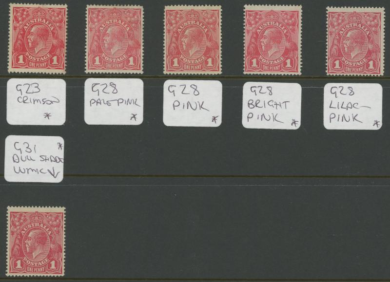 shades), then G11, G12, G13, G17, G21, G22, G23, G23½ **, G28 x4 sub-shades (this group questionable), G31 and two others; plus Rough Paper G72, generally very fine; also 1d violet & 1d green varieties on annotated album pages including some listed,
