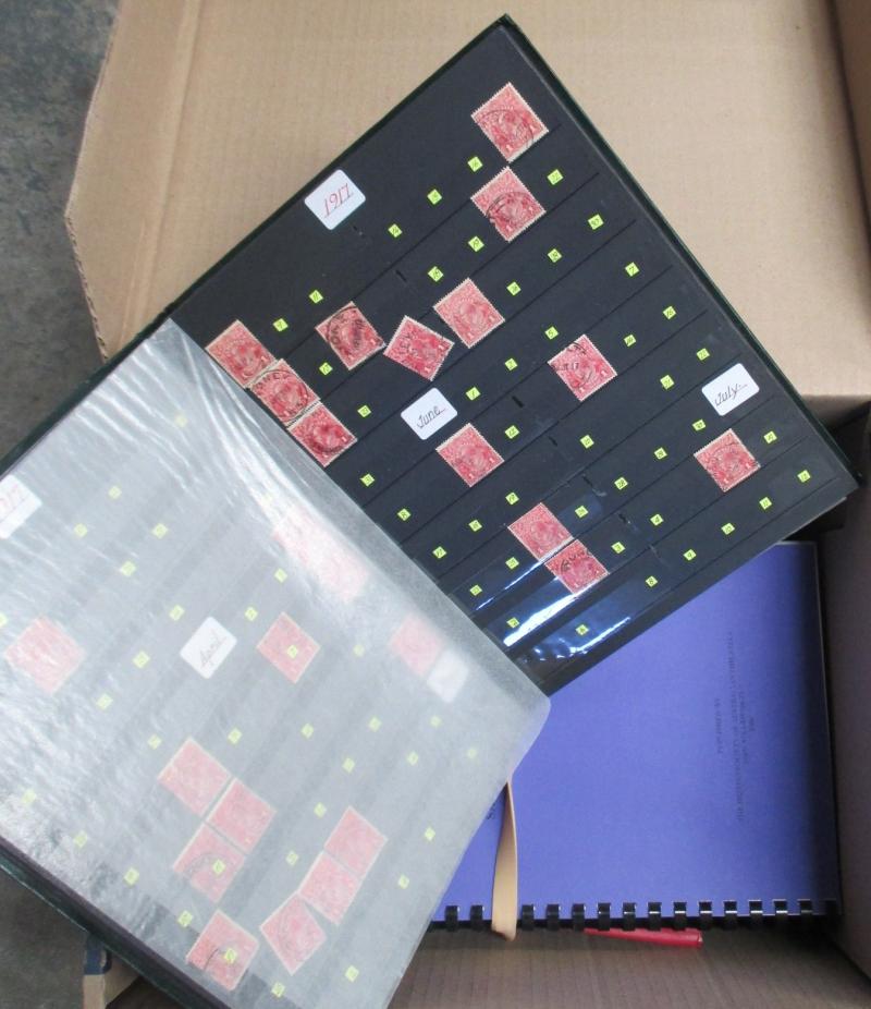 ONE PENNY: 1d reds and greens plated and dated in albums & stockbooks filling four archive boxes, well written-up including a good