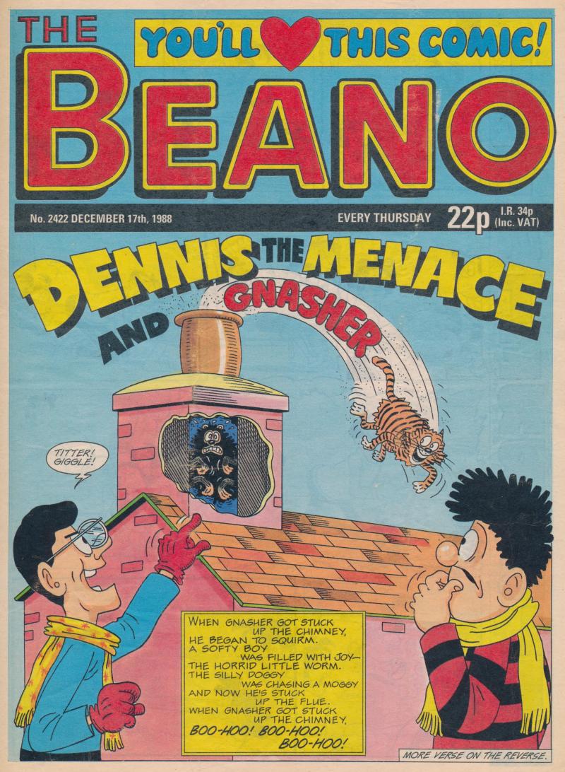 Comics & postcards group including WW1 humorous saucy print 'Can I Take you boys into Bath with me?'; 'The Beano' comics (65);