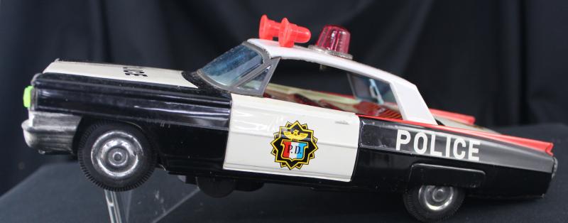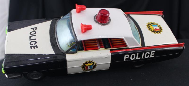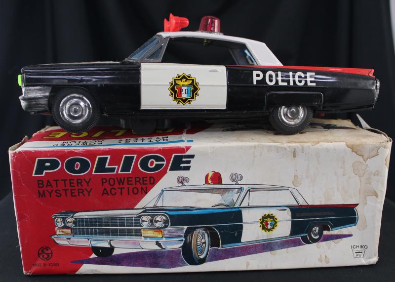 Model Car 1960s Ichiko Police Car, 27cm long, made in Korea, in fine condition in original box (some soiling on lid). (Image1) (Image2)