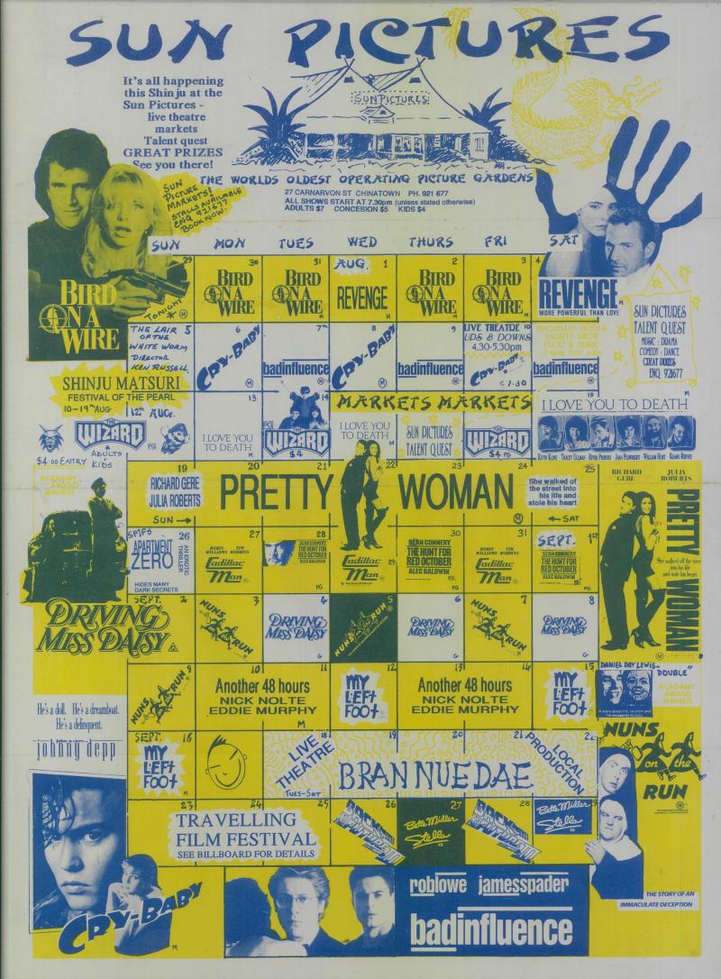 Posters' [54] & 'James Bond 007' [54]; 1990 Sun Pictures calendar of upcoming films noted 'Pretty Woman' & 'Driving Miss Daisy'; theatre programmes (9) including 'West Side Story' & 'Les Miserables', mainly Fine.