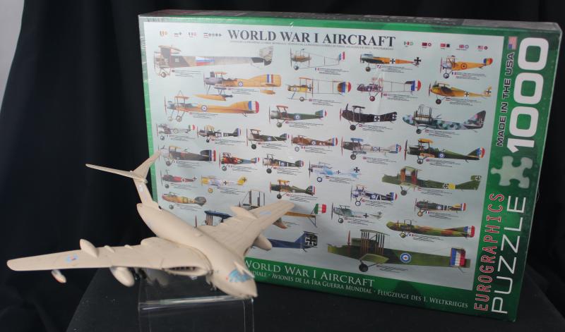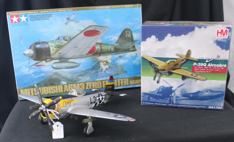with stands (some minor faults) noted FW190, P47, Avro Vulcan & ME262; Franklin Mint 'The World's Greatest Aircraft' [25]; wooden propellors (35); 1:48 model kit of Mitsubishi Zero; jigsaw puzzle 'World War 1 Aircraft'.