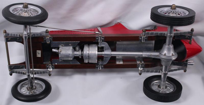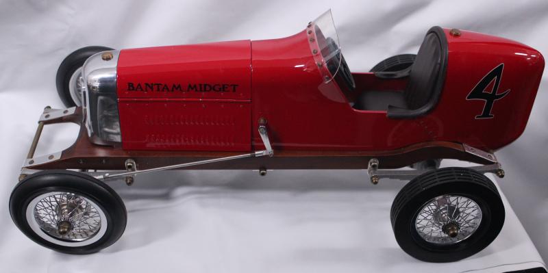 Model Car Authentic Models red 'Bantam Midget Spindizzy', model of 1930s tether car with miniature internal combustion engine, 49cm