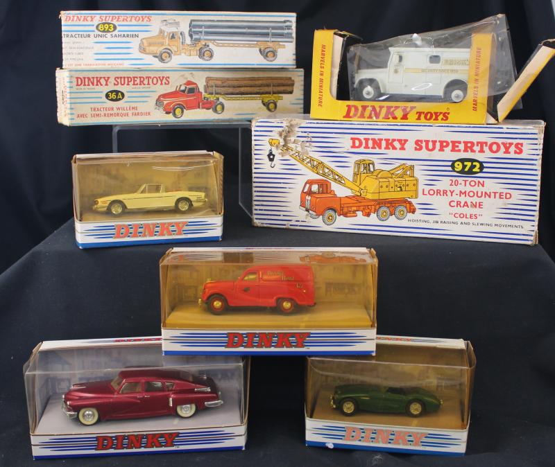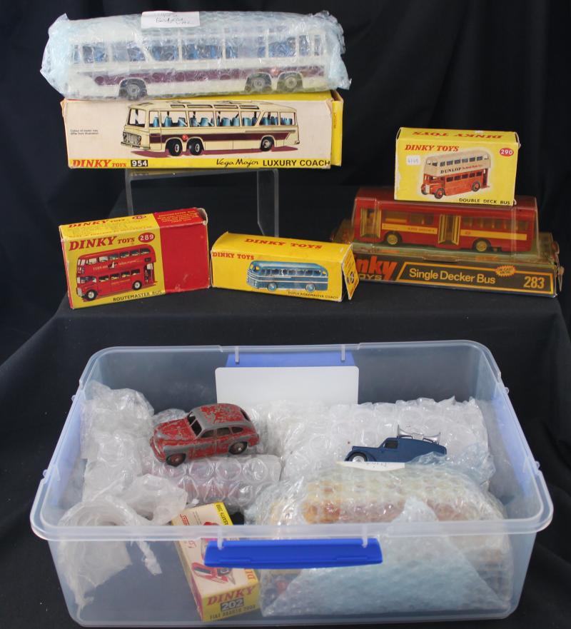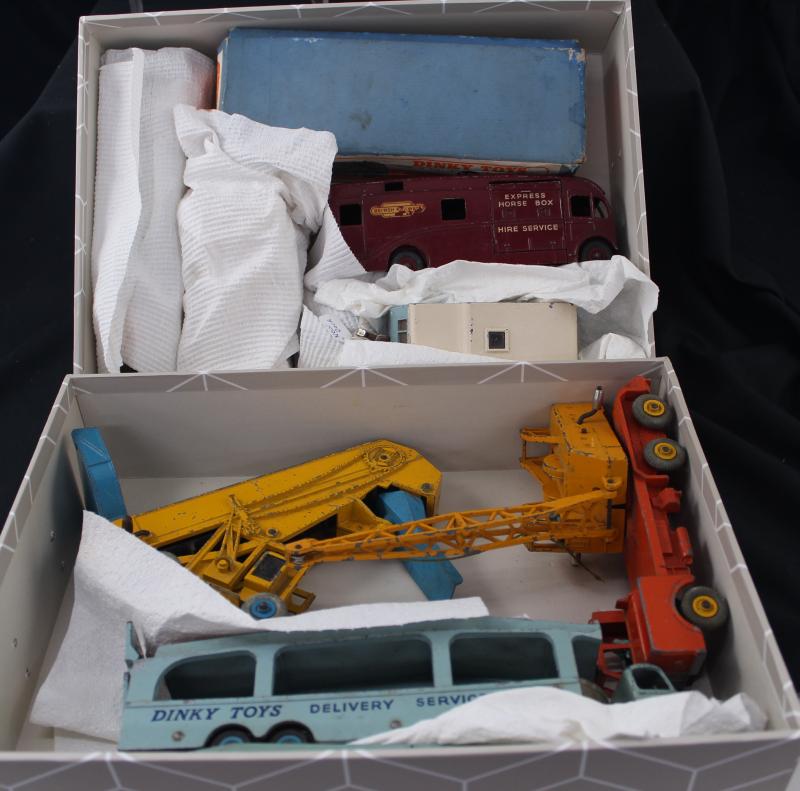 Coach, 972 20-Ton Crane, DY-11, DY-15, DY-26 & DY-30; plus unboxed (52) including 582 Pullmore Car Transporter with 994 Loading Ramp, condition varies. Basis for a wonderful collection.