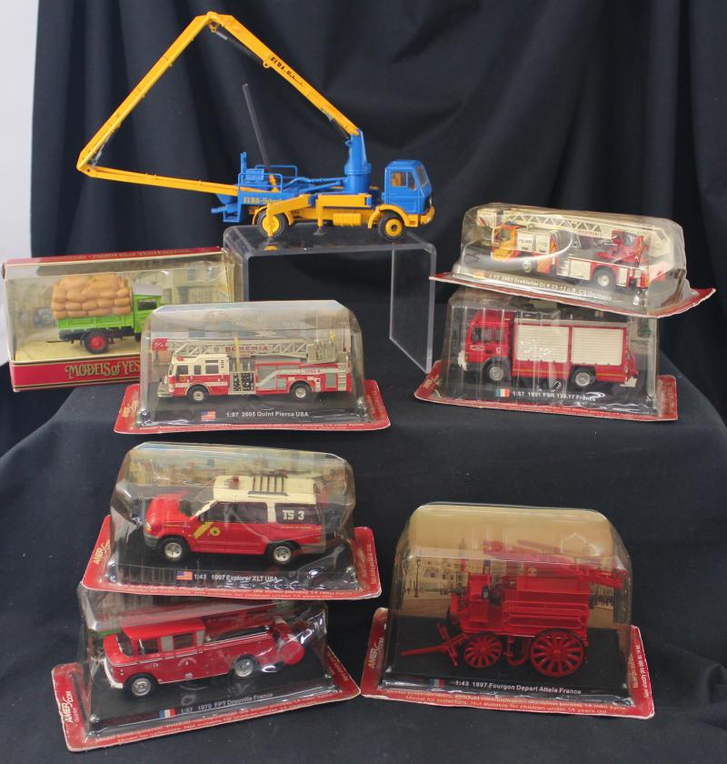 Model Cars various sizes & makers, noted car & caravan sets (17), cars (32), F1 diorama, fire engines (10), trucks (20), buses (6),