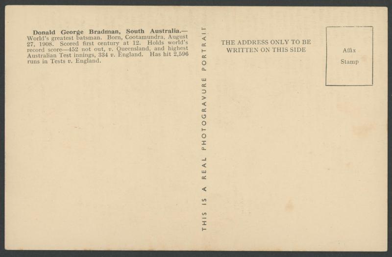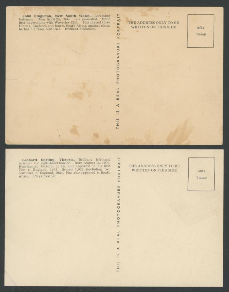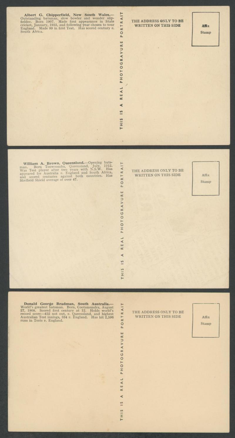 Postcards 1936 Photogravure portrait postcards 'Australian & English Cricketers 1936-37', complete set including Bradman, Brown,
