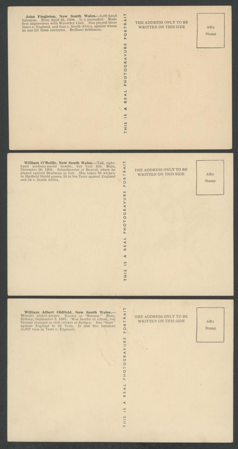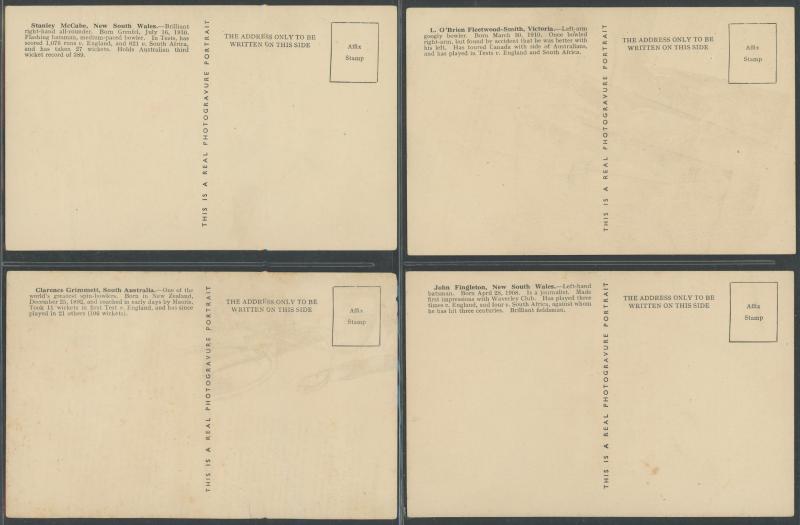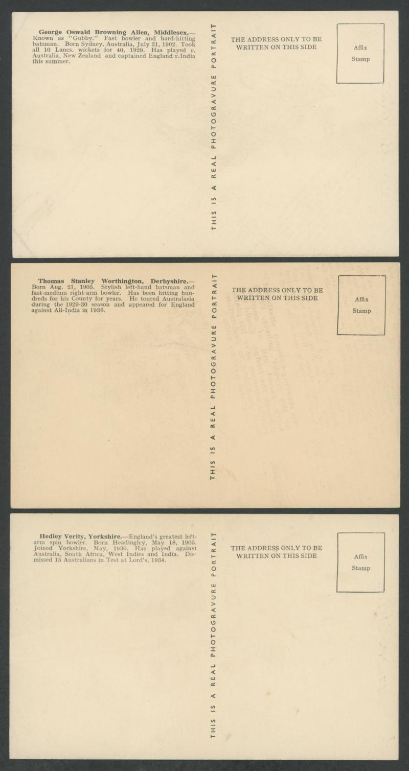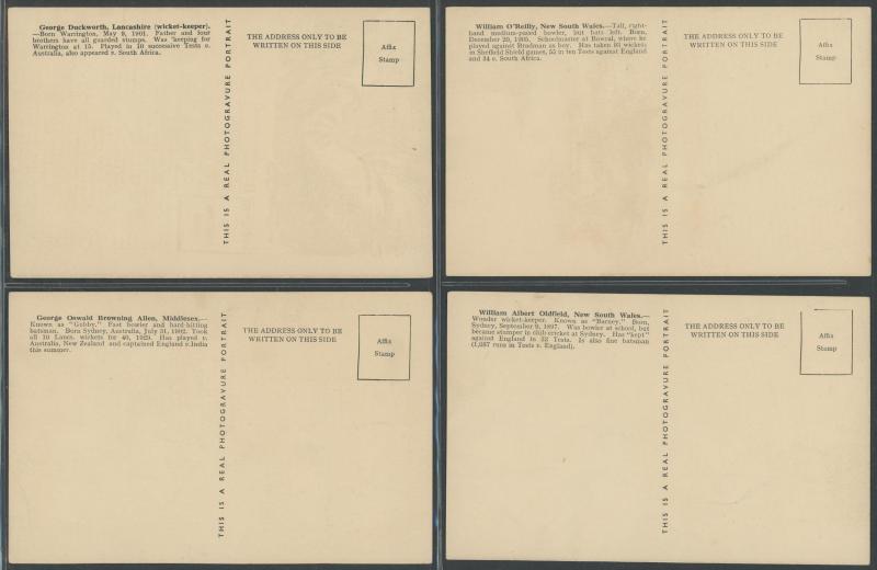 Chipperfield, Darling, Fingleton, Fleetwood-Smith, Grimmett, McCabe, Oldfield, O'Reilly, Allen, Duckworth, Fagg, Fishlock, Hammond, Hardstaff, Leyland, Robins, Verity & Worthington, Fine/Very Fine. Rare as a complete set.