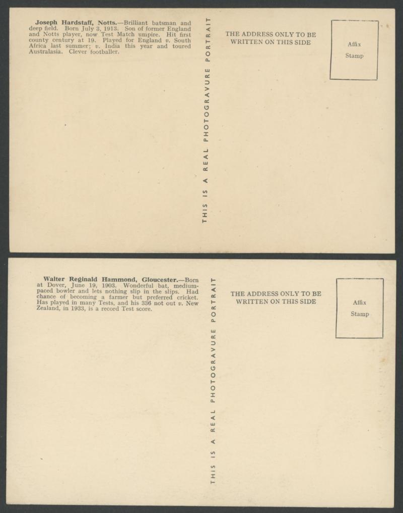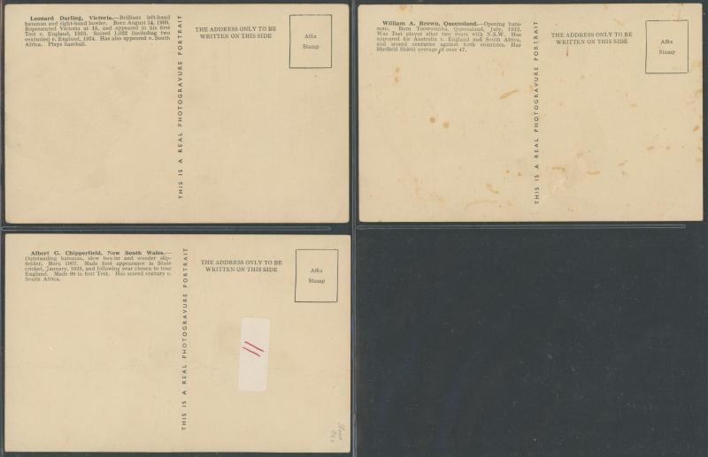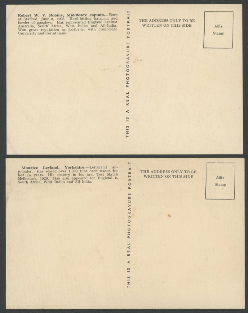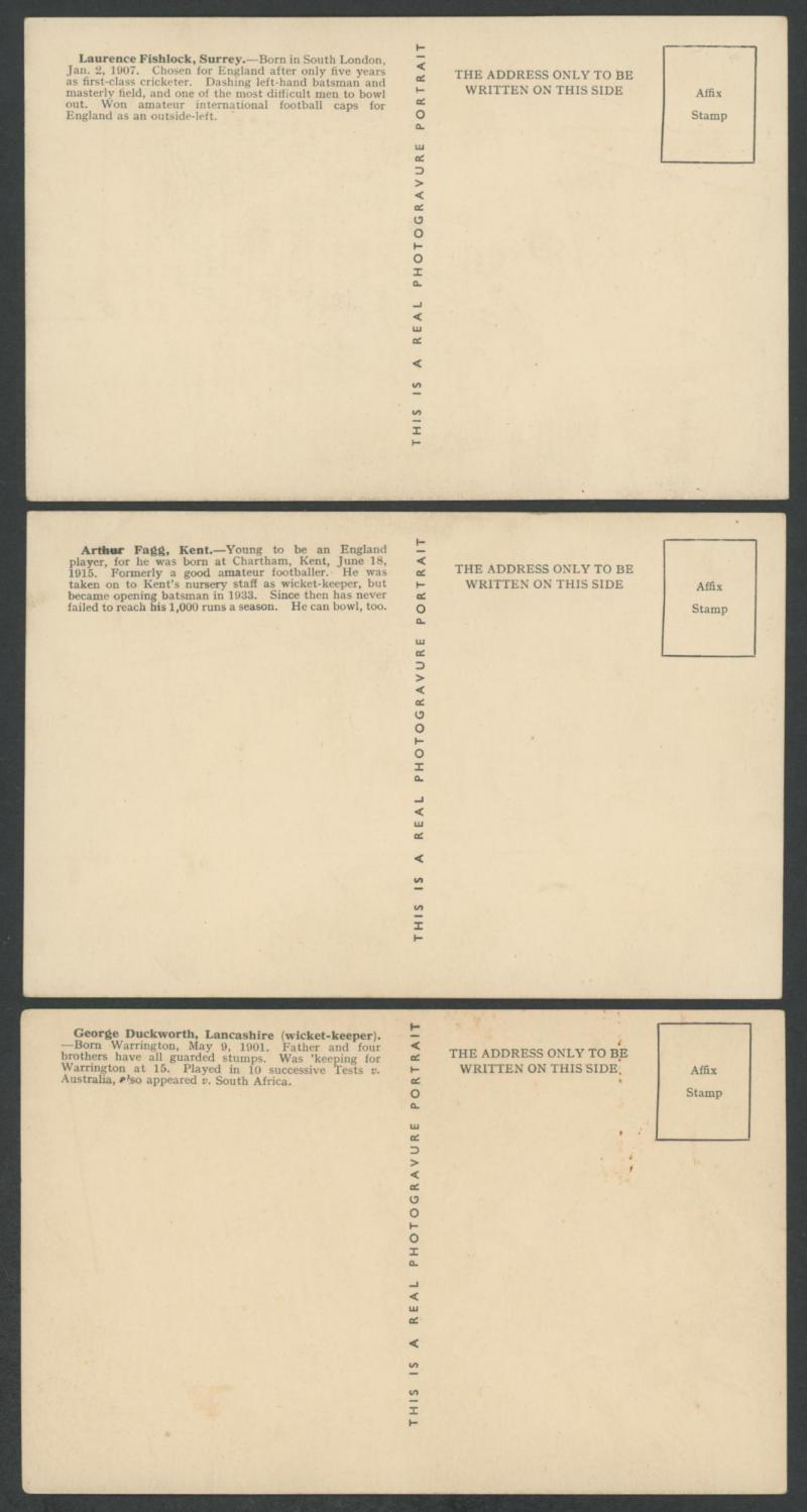 Chipperfield, Darling, Fingleton, Fleetwood-Smith, Grimmett, McCabe, Oldfield, O'Reilly, Allen, Duckworth, Fagg, Fishlock, Hammond, Hardstaff, Leyland, Robins, Verity & Worthington, Fine/Very Fine. Rare as a complete set.