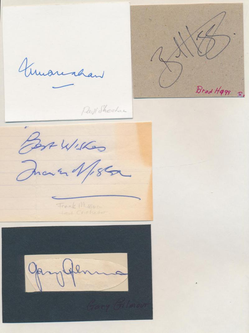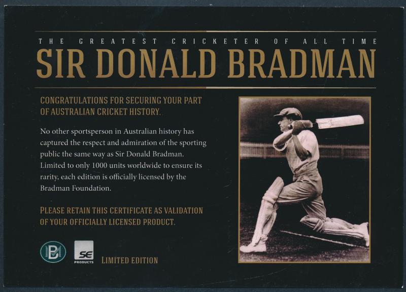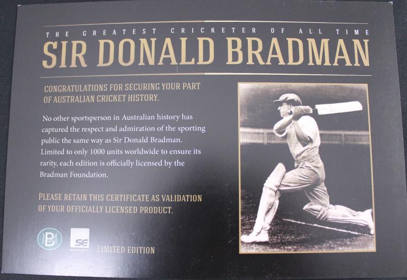 signed mini-bat, 'Don Bradman', all framed, various sizes, Fair condition.