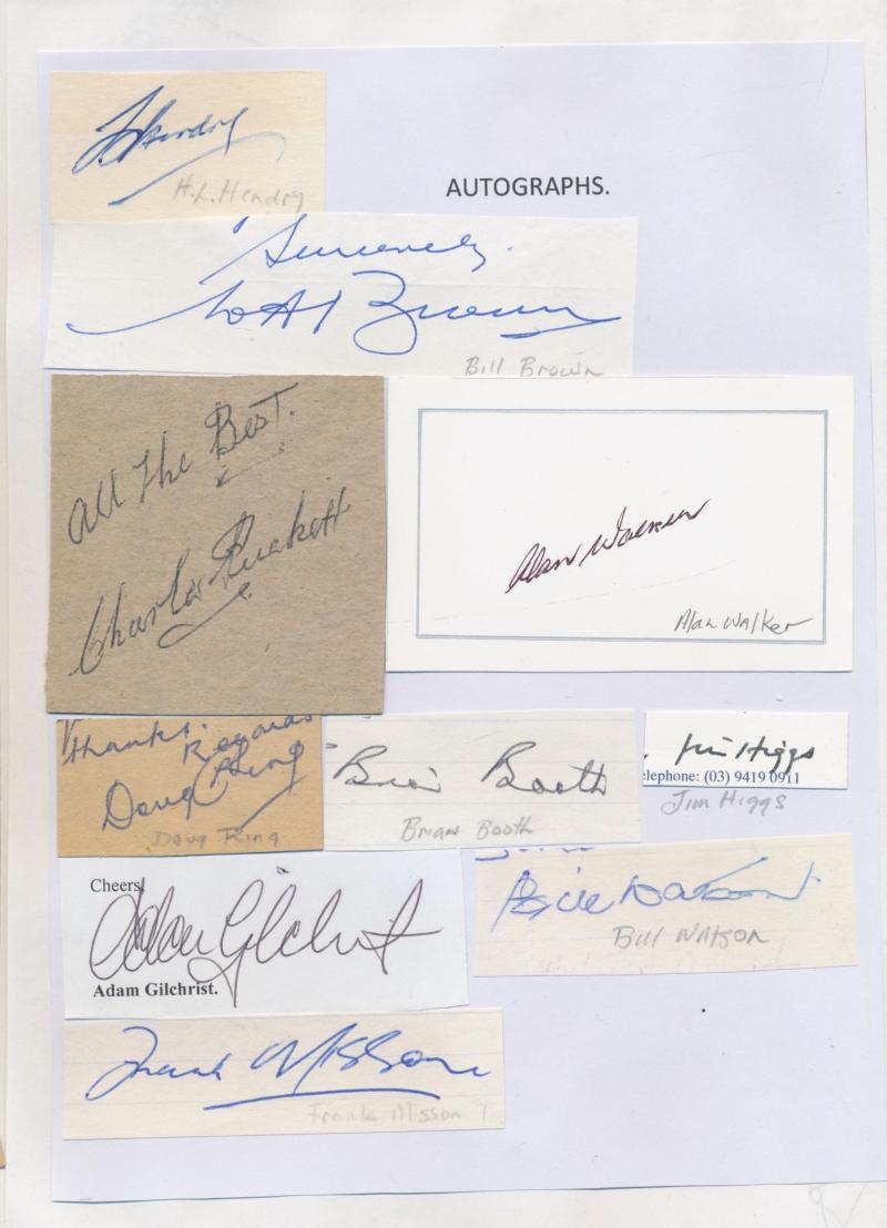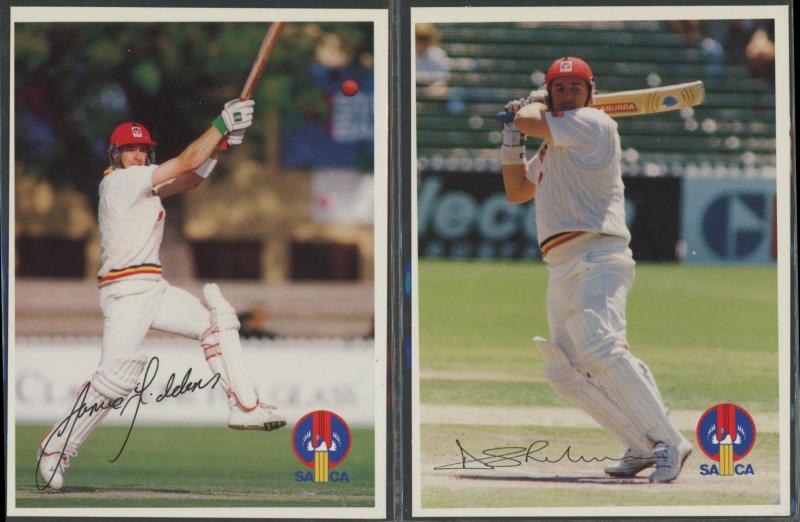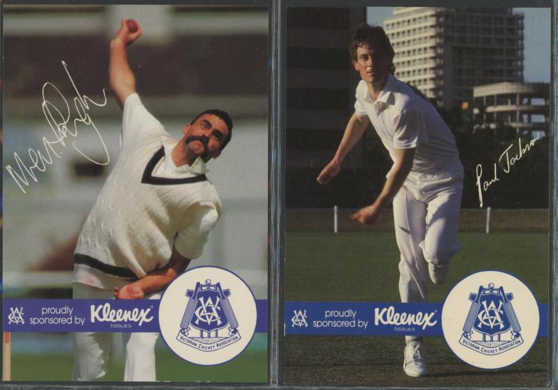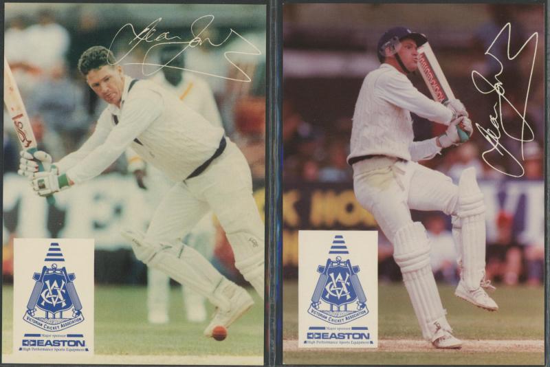 English Cricketers 1936-37' [17/20]; 'Australian Cricket Hall of Fame' [10]; 1980s sets of Victorian, Tasmania, SA & WA Cricketers; signed Kookaburra cards of Dean Jones, Ian Healy & Darren Lehmann; plus range of cricket pictures (66), photographs
