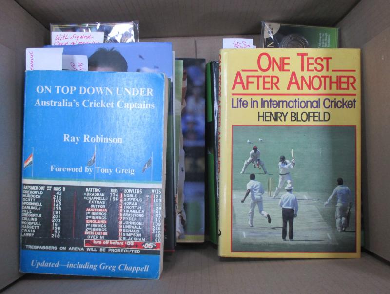 Signed cricket books noted Don Bradman, Richie Benaud & Ian Craig, Mark Taylor, Shane Warne, Ricky Ponting, Steve Waugh (2), Doug