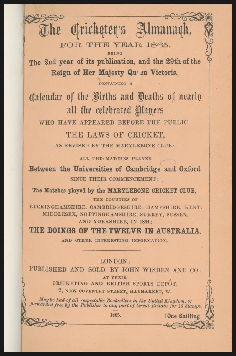 Wisden Cricketers Almanack for 1865 (2nd Year), First Facsimile Edition (1960), rebound in blue cloth with gilt lettering on spine,