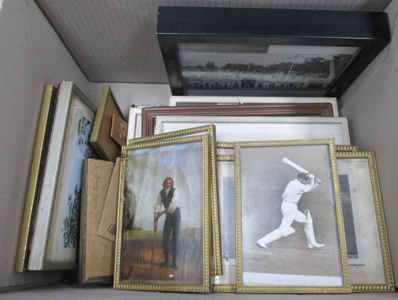 Prints & Photographs Group of medium to small framed cricket prints (11) & photographs (13) with three signed - Freddy Brown, Hans