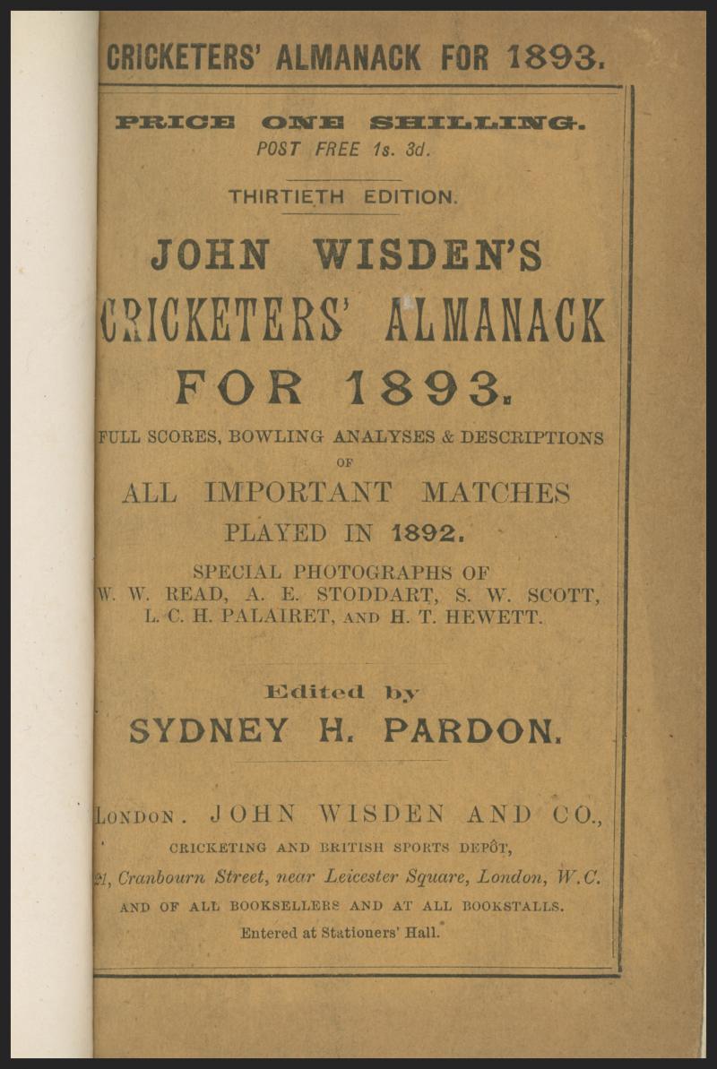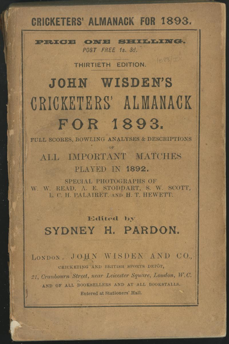 Wisden Cricketers Almanack for 1893 (30th Year), with original wrappers, some wear to spine, Fair/Fine condition. (Image1) (Image2)