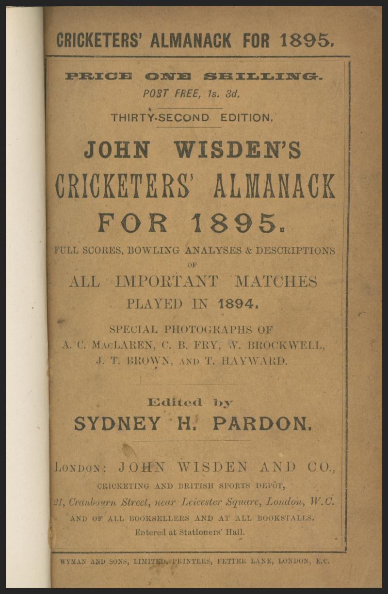 Wisden Cricketers Almanack for 1895, with original wrappers, rebound in blue cloth with gilt lettering on spine, Fair/Fine