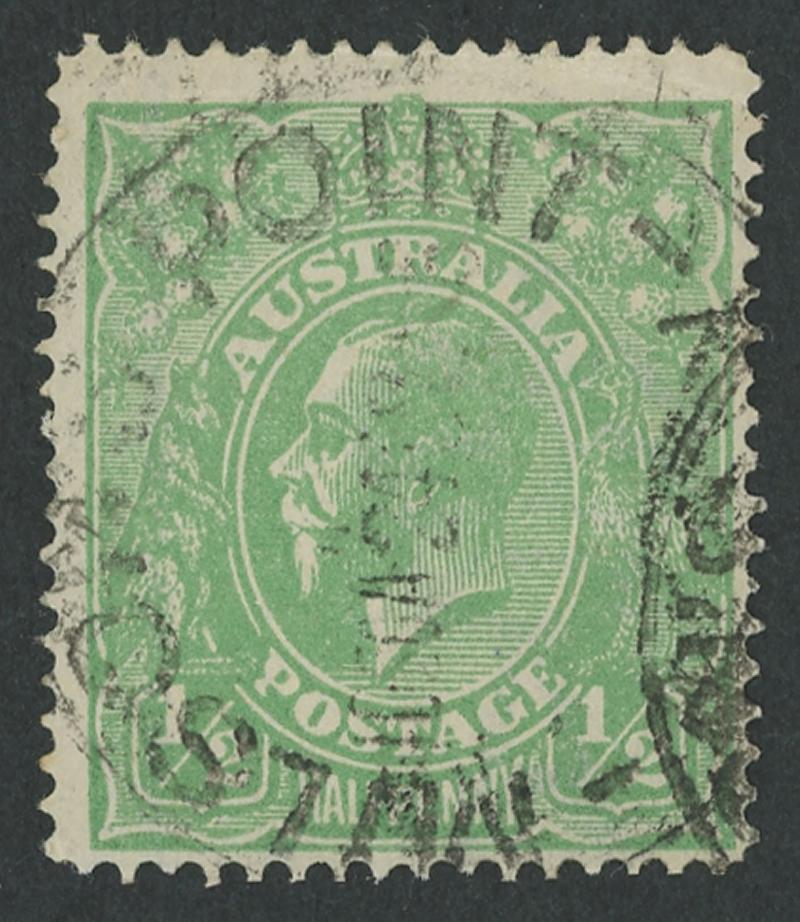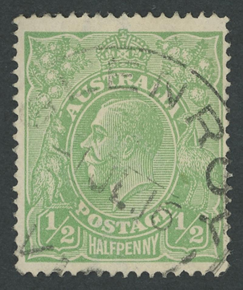 ½d emerald Single-Line Perf ACSC 64A (SG 20a), light Milson's Point (NSW) cds, Cat $900 (£650). Ex David Adams. (Image1) (Image2)