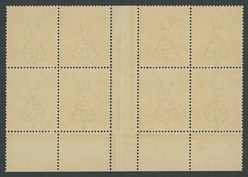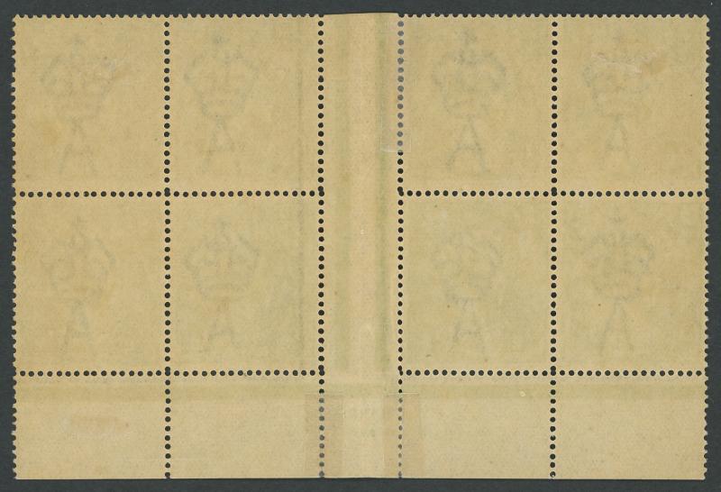 67(6)z in a block of 8 (4x2), most units well-centred, a few light gum bends, unmounted, Cat $570+ for the imprint block mounted plus 4 unmounted singles. Ex Gerald Fon. (Image1) (Image2)