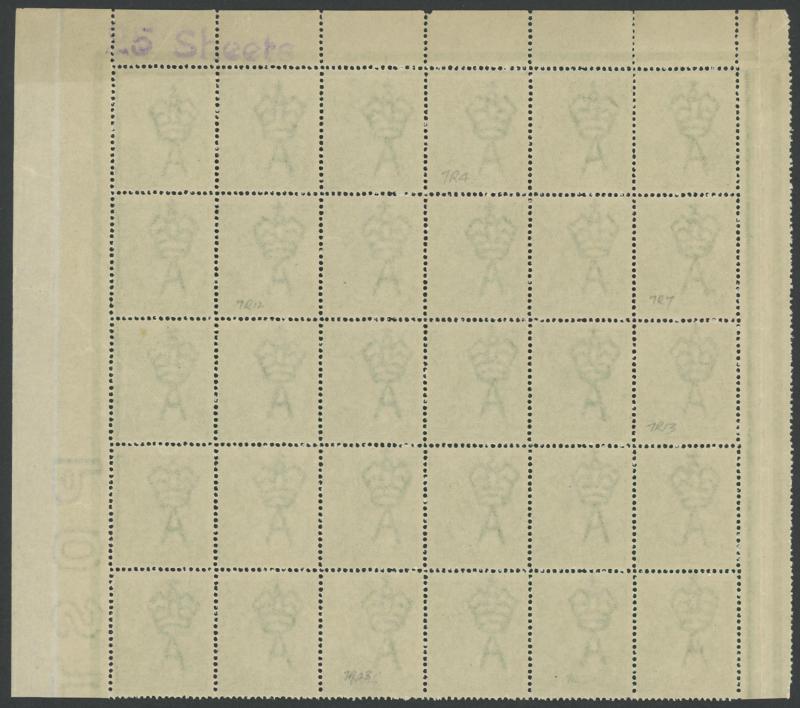 ½d emerald SG 20 Electro 7 marginal block of 30 (6x5) from the top of the right-hand pane with all listed varieties including Right
