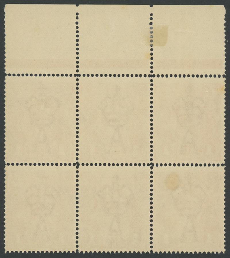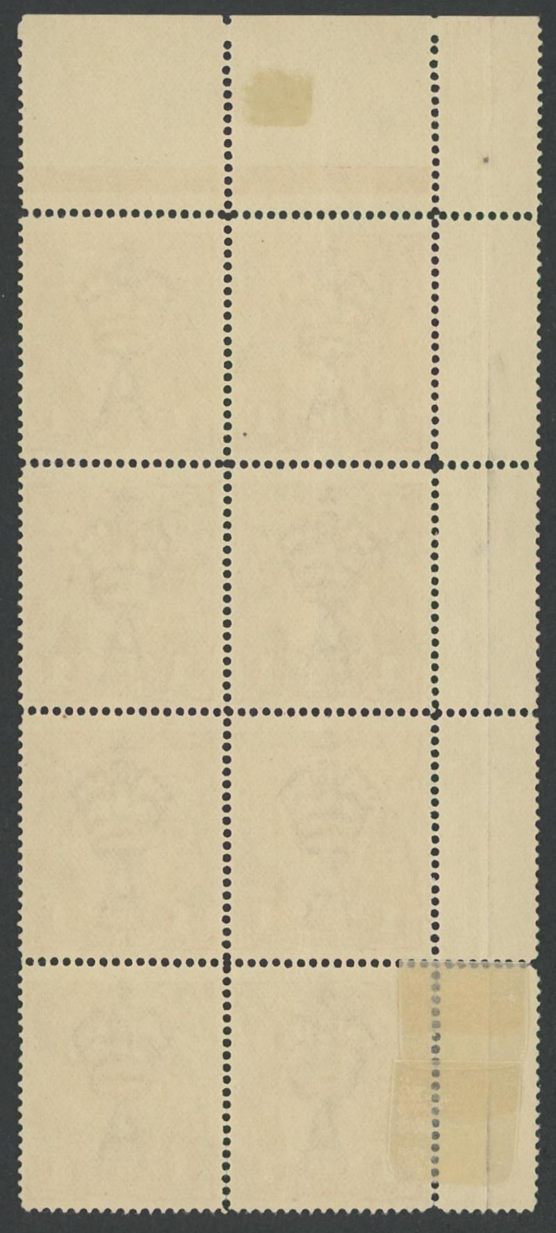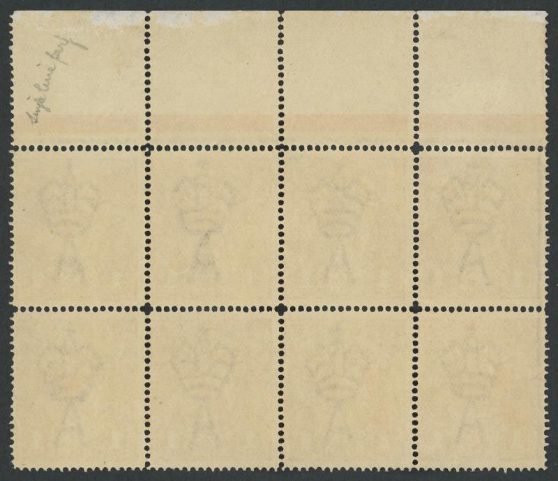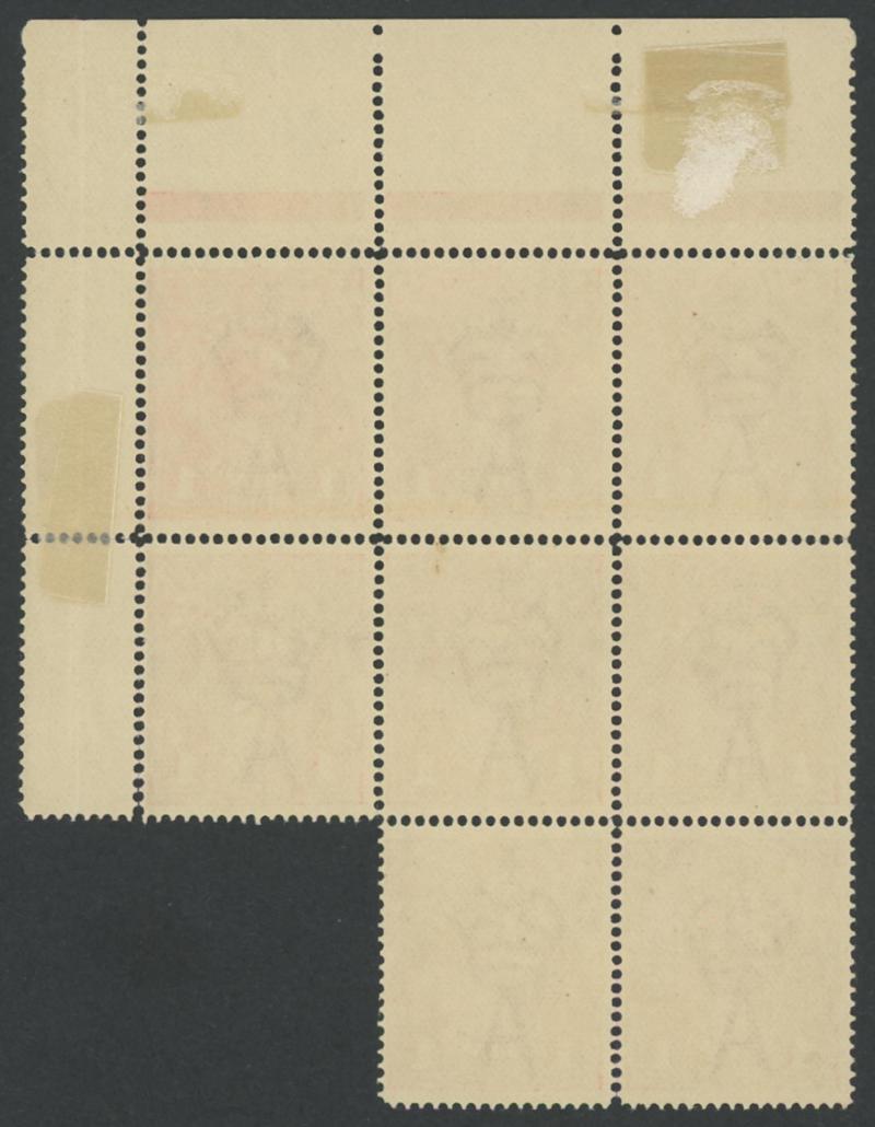 upper units [Pos VI/1-4/7-10] ACSC 70(3), small adhesion & gum loss in the margin only, the stamps unmounted, Cat $320+ for singles plus a substantial premium for the multiple. Ex Graeme Stephensen. (Image1) (Image2)