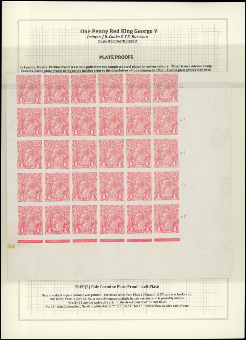 Perkins Bacon imperforate plate proofs 1d in pale carmine on glazed ungummed thin card ACSC 70PP(2)B lower-right quarter-sheet of