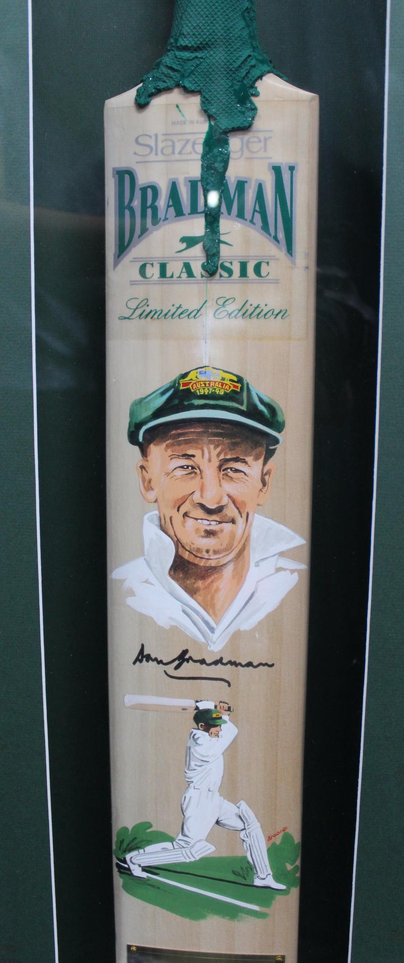 Sir Donald Bradman 'Slazenger - Bradman' cricket bat with hand-painted portrait, with Don Bradman signature affixed to front,
