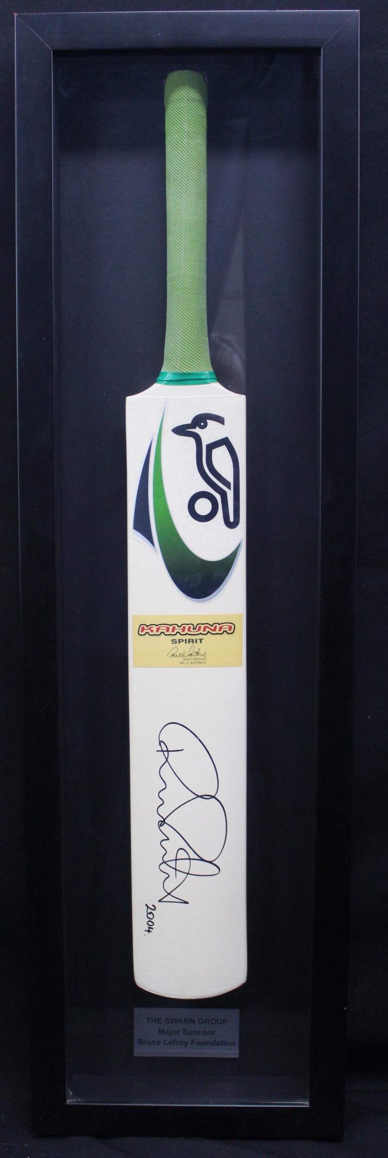 cricket bat, in attractive display case, overall 43x112cm. With CoA. (Image1) (Image2)