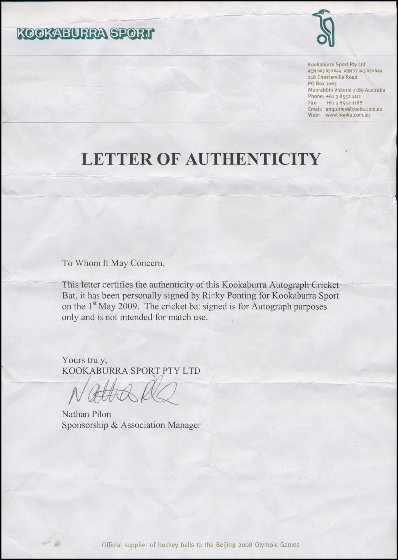 Ricky Ponting 'Kookaburra - Ponting Foundation' cricket bat signed on front by Ricky Ponting, superb condition. (Image1) (Image2)
