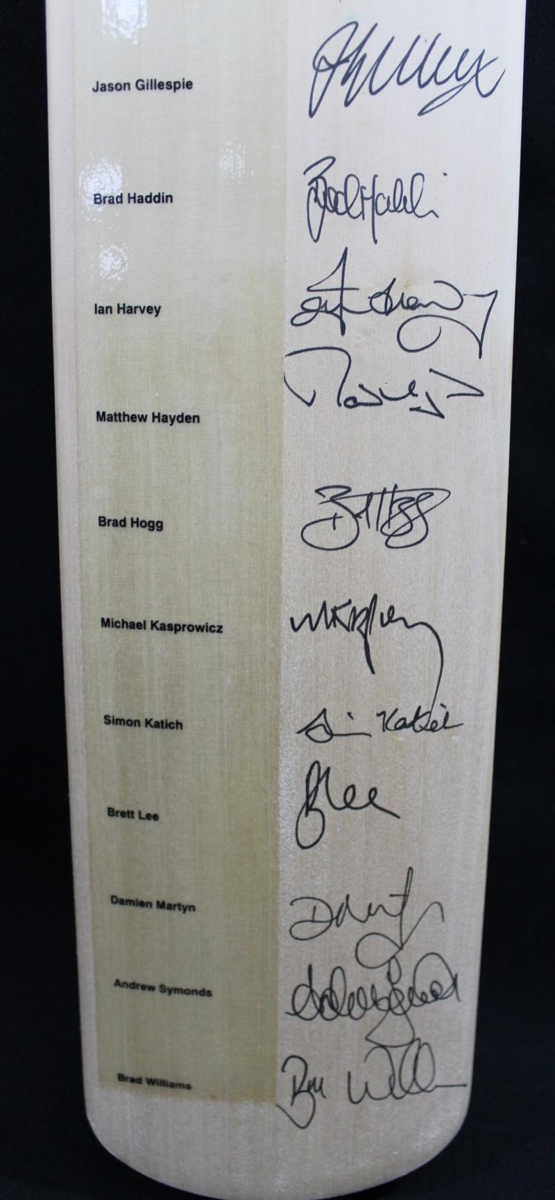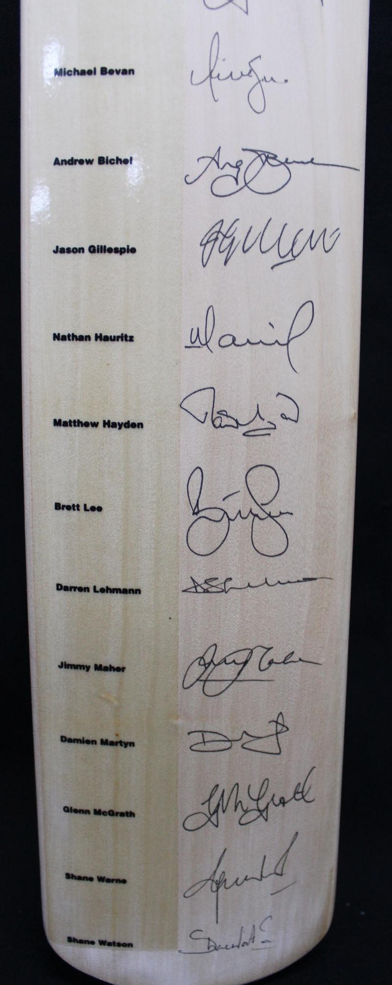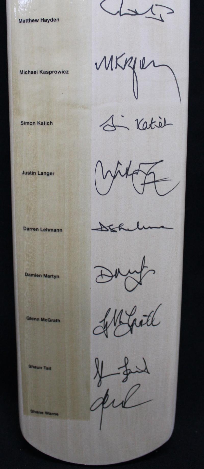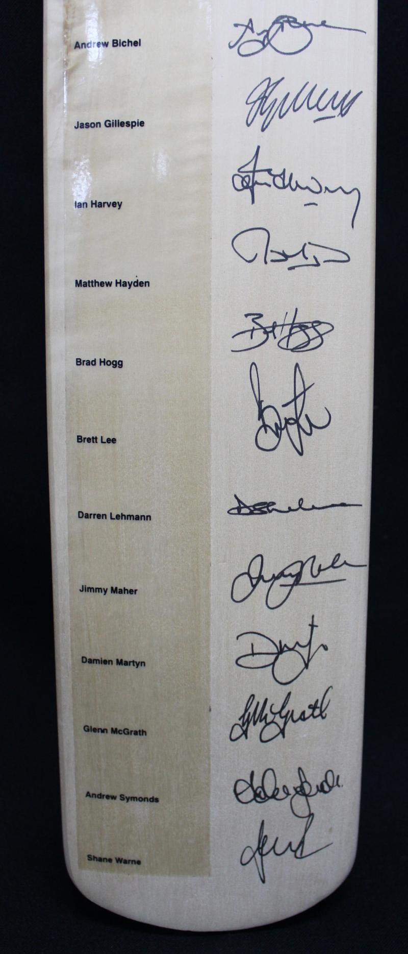 1997 Australian Team 'Kookaburra' cricket bat with 15 signatures including Mark Taylor (captain), Greg Blewett, Shane Warne & Andy