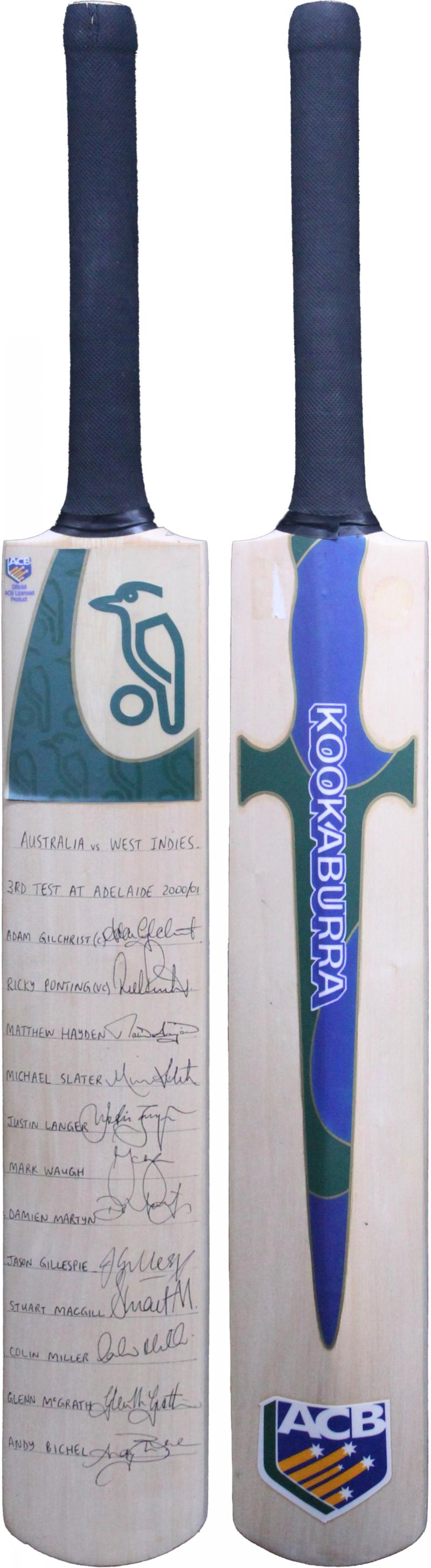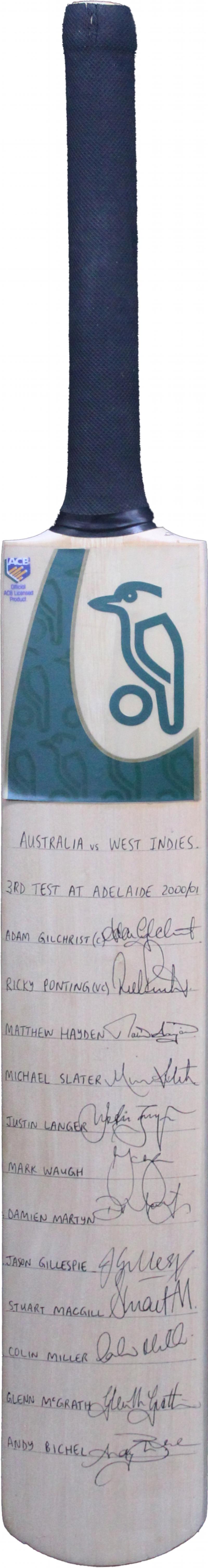 2000-01 Australian Team 3rd Test v West Indies at Adelaide 'Kookaburra' cricket bat with 15 signatures including Adam Gilchrist