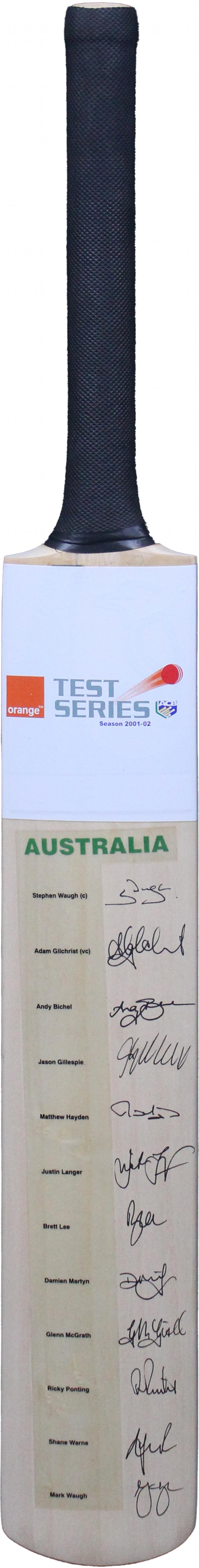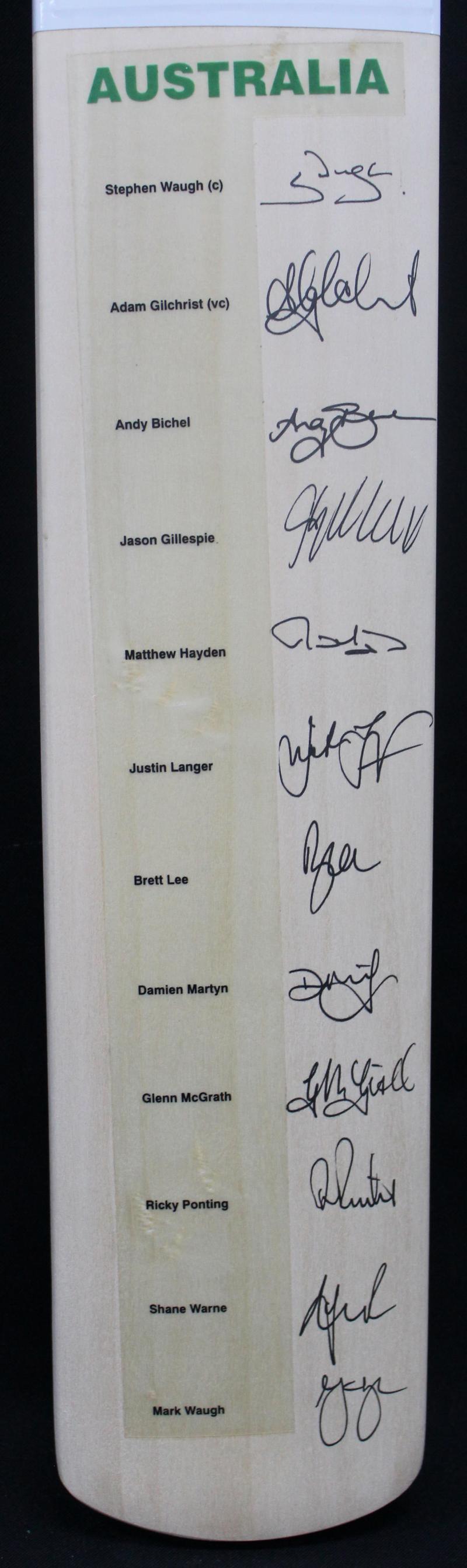 2001-02 Australian Team 'Kookaburra' cricket bat with 12 signatures including Stephen Waugh (captain), Adam Gilchrist (vice
