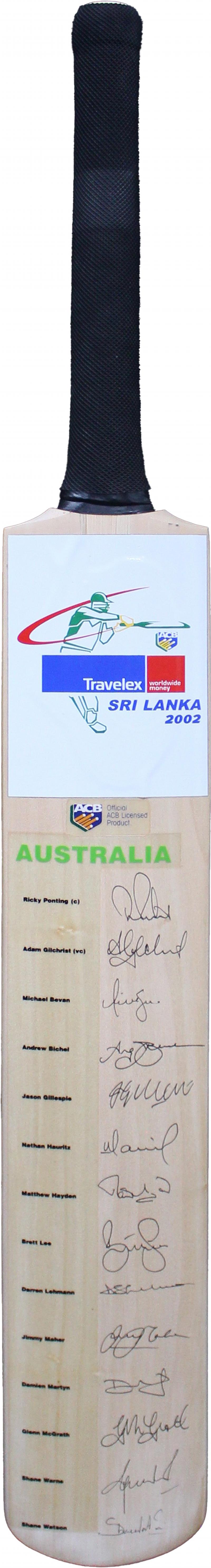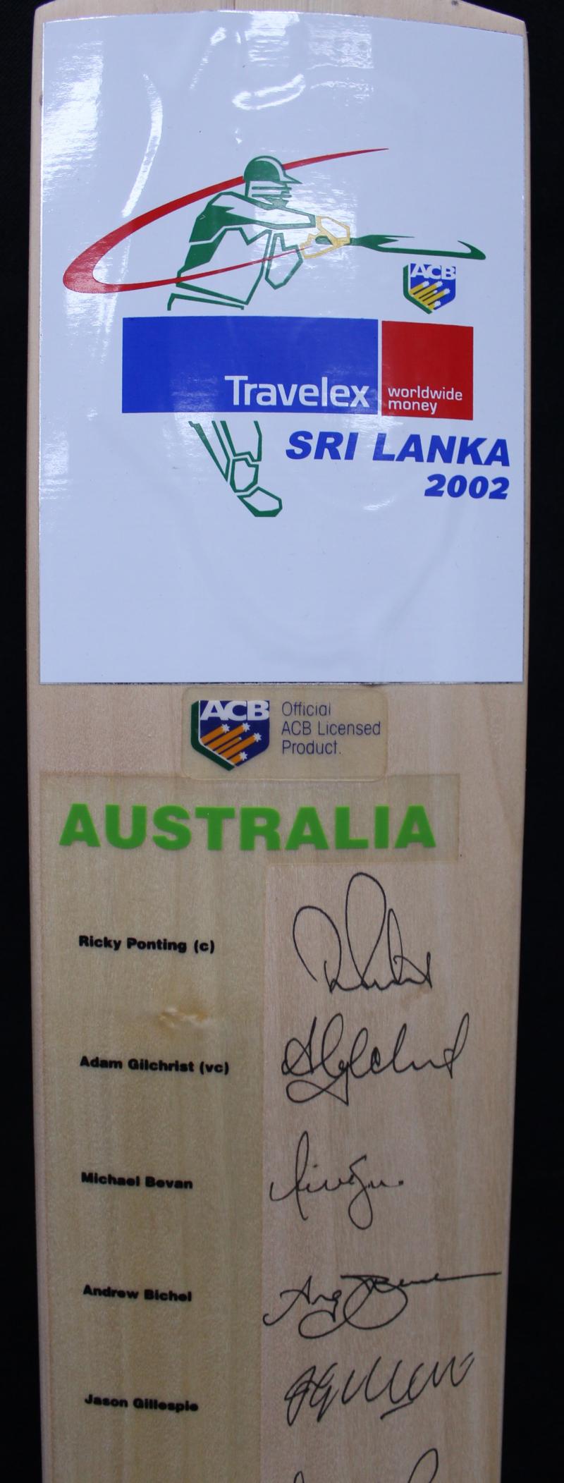 2002 Australian Team v Sri Lanka 'Kookaburra' cricket bat with 14 signatures including Ricky Ponting (captain), Adam Gilchrist
