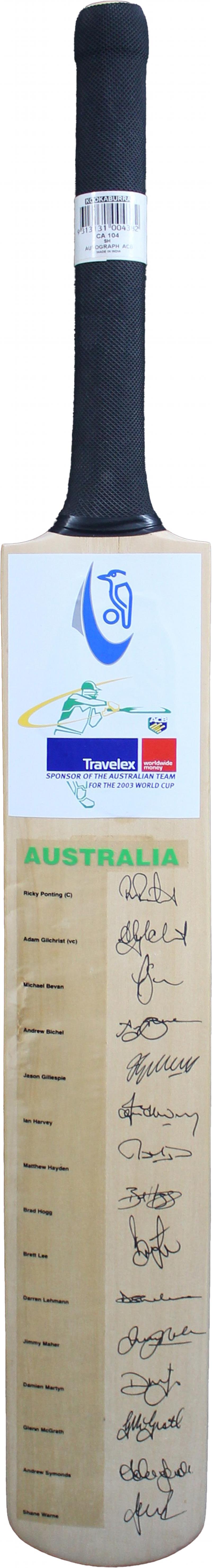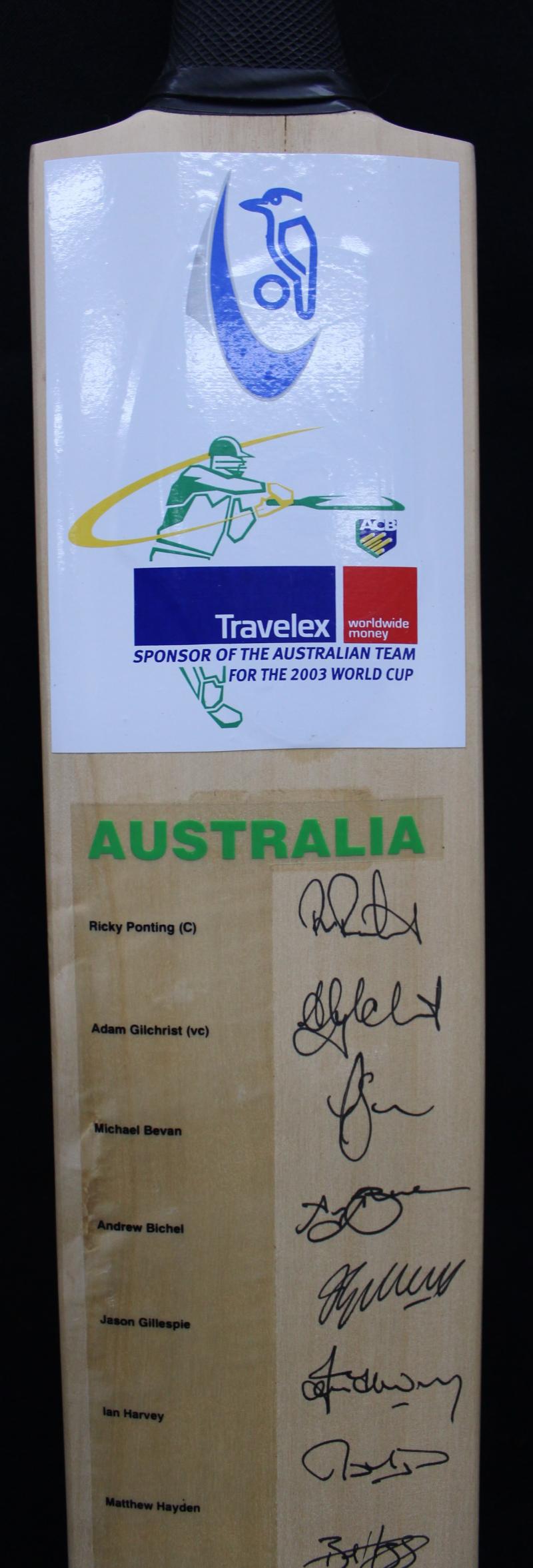 2003 World Cup 'Kookaburra' cricket bat signed by the Australian Team with 13 signatures including Ricky Ponting (captain), Adam