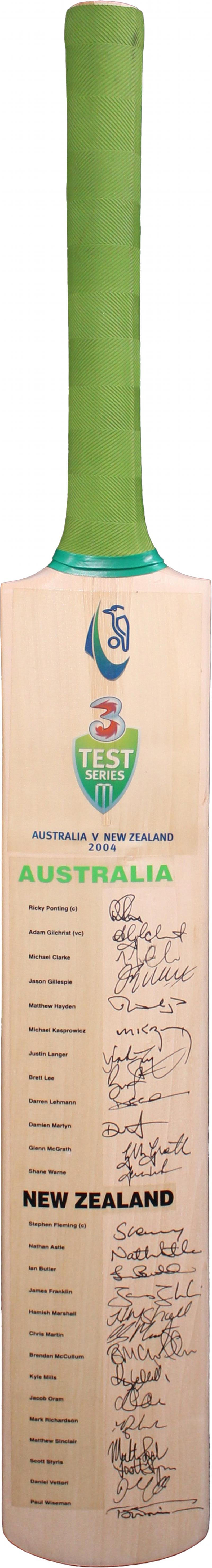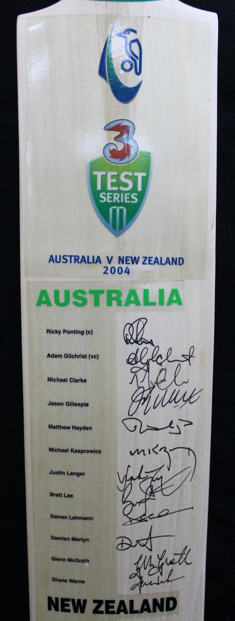 2004 Australian Team v New Zealand 'Kookaburra' cricket bat signed by both teams with 26 signatures including Ricky Ponting, Adam