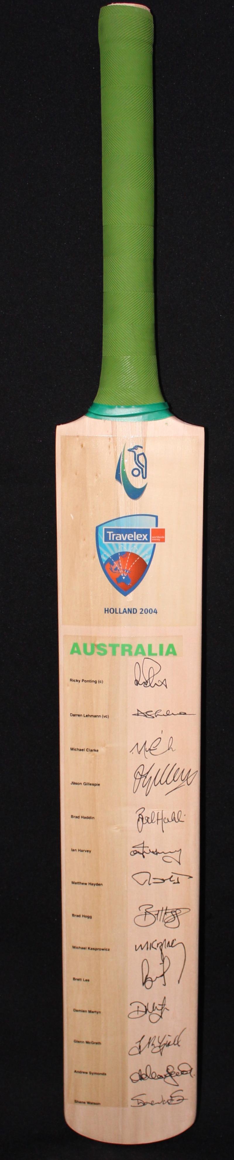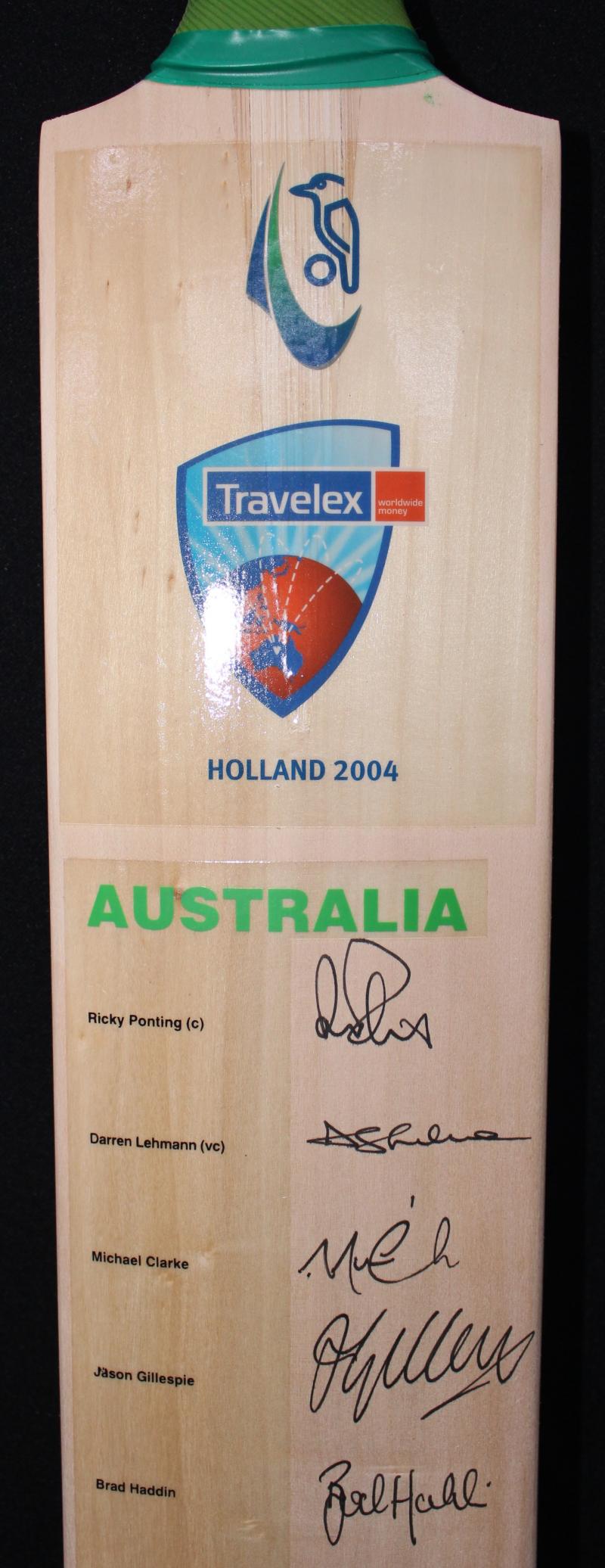2004 Australian Team v Holland 'Kookaburra' cricket bat with 14 signatures including Ricky Ponting, Michael Kasprowicz, Damien