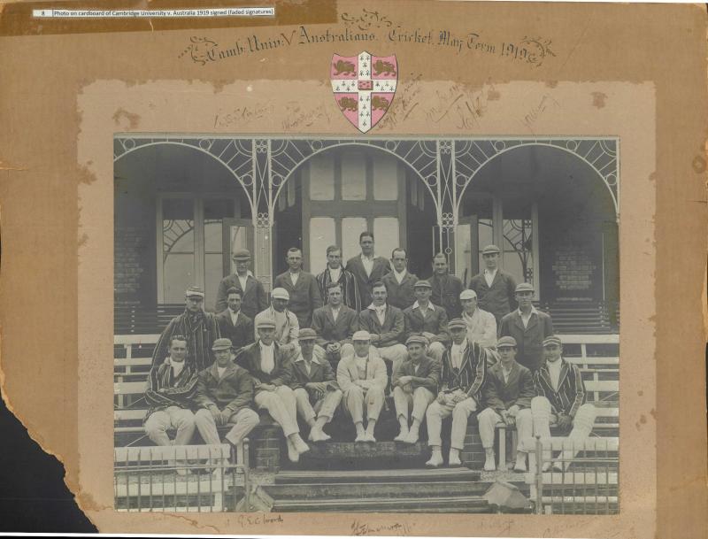 1919 Australian Imperial Force (AIF) Team team photograph titled 'Camb. Univ. V Australians. Cricket, May Term 1919' with