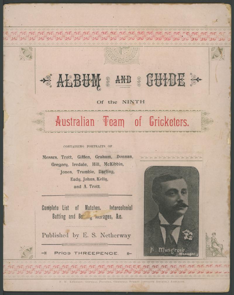 Book 'Album and Guide of the Ninth Australian Team of Cricketers' published by ES Netherway [Adelaide, 1896], some tone spots and