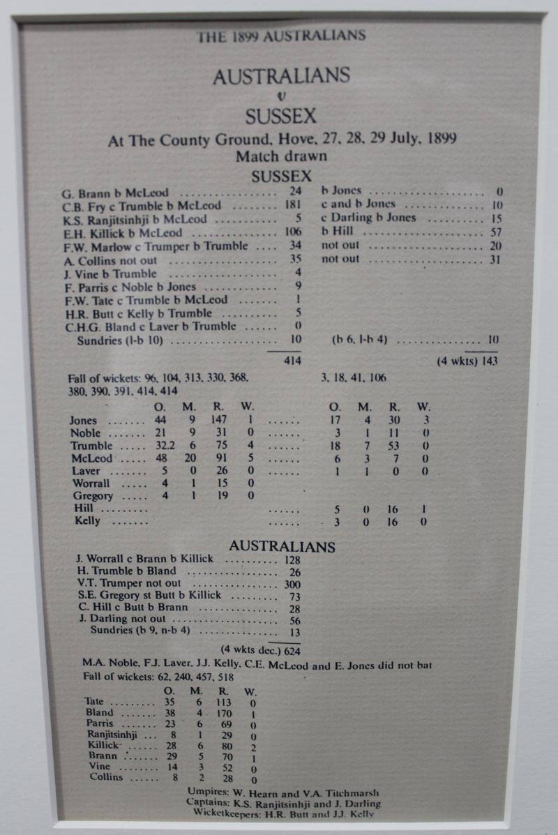 1899 where Victor Trumper scored 300 not out, window mounted with scorecard of the match and list of players, archivally framed & glazed, overall 65x52cm. Ex David Williams collection. (Image1) (Image2)