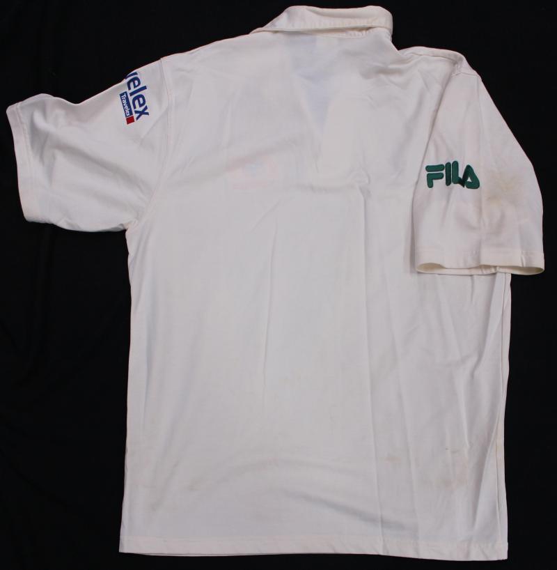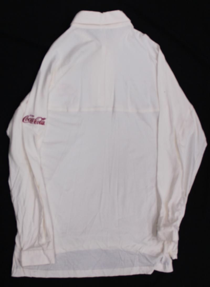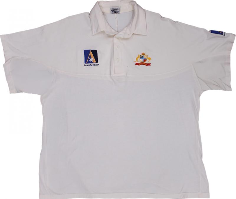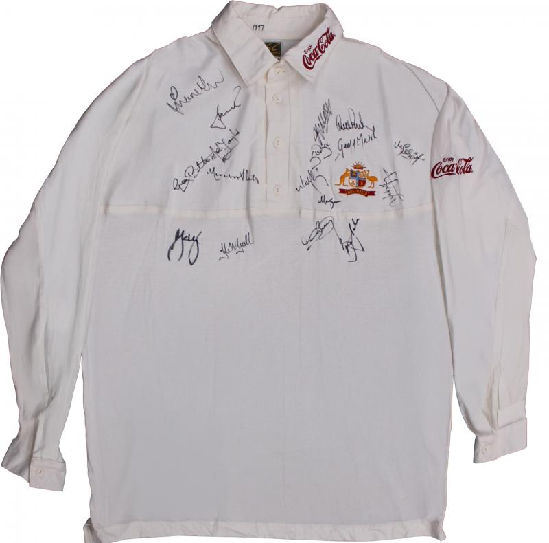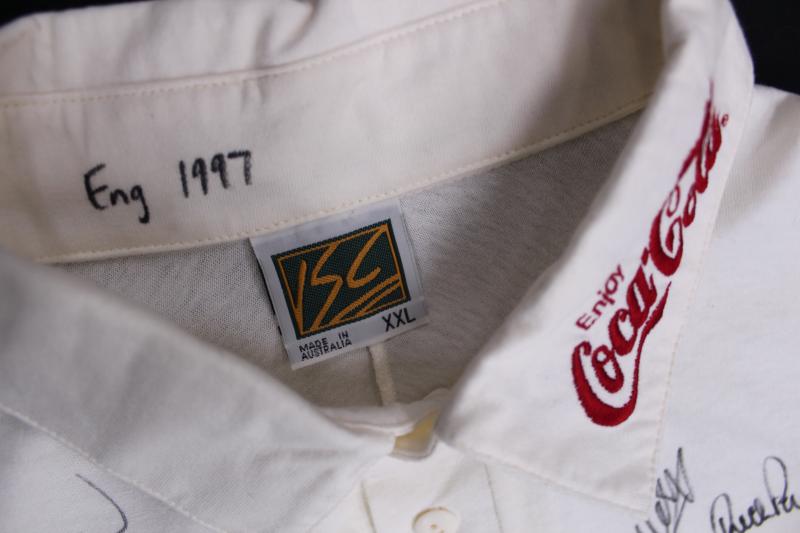 Australian Test Shirt with embroidered Australian Coat-of-Arms and Coca Cola logo, match worn with 'Eng 1997' inside collar, with