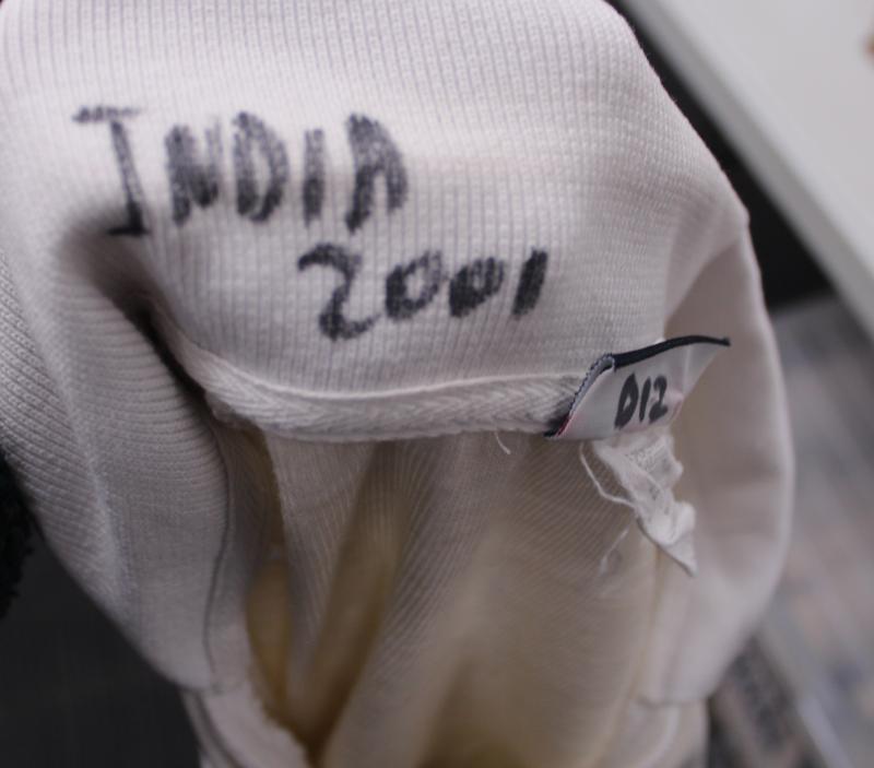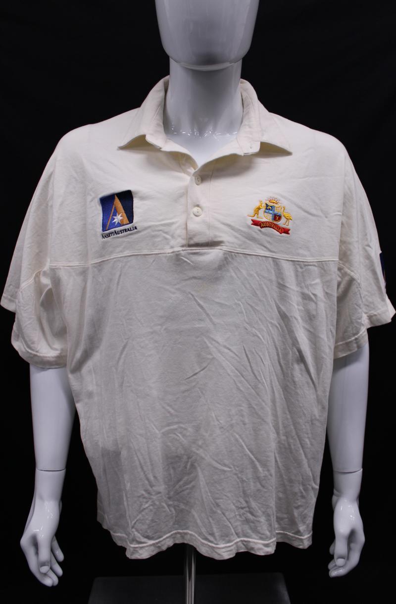 Australian Test Shirt with embroidered Australian Coat-of-Arms and Kelvinator & Fosters logos, match worn with 'INDIA 2001' on