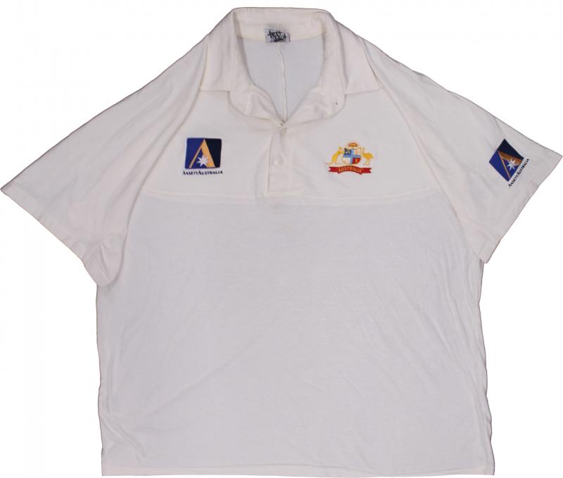 Australian Test Shirt with embroidered Australian Coat-of-Arms and Coca Cola logo, match worn with 'Jason' on tag, endorsed