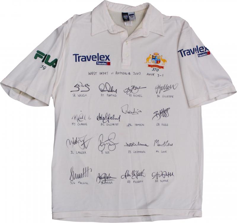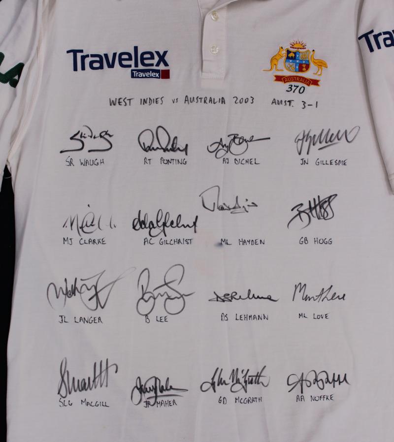 endorsed 'WEST INDIES vs AUSTRALIA 2003 AUST 3-1' with 16 signatures including Steve Waugh, Ricky Ponting, Jimmy Maher & Martin Love. Ex Jason Gillespie collection. (Image1) (Image2)