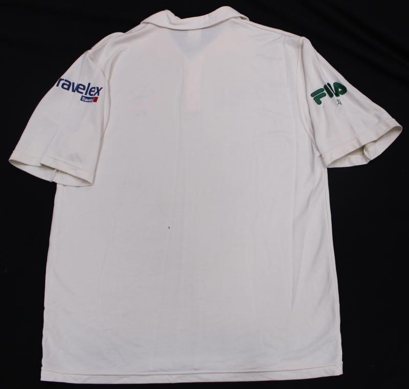 Australian Test Shirt with embroidered CA Coat-of-Arms, '370', and Travelex & FILA (with JG below) logos, match worn, endorsed on